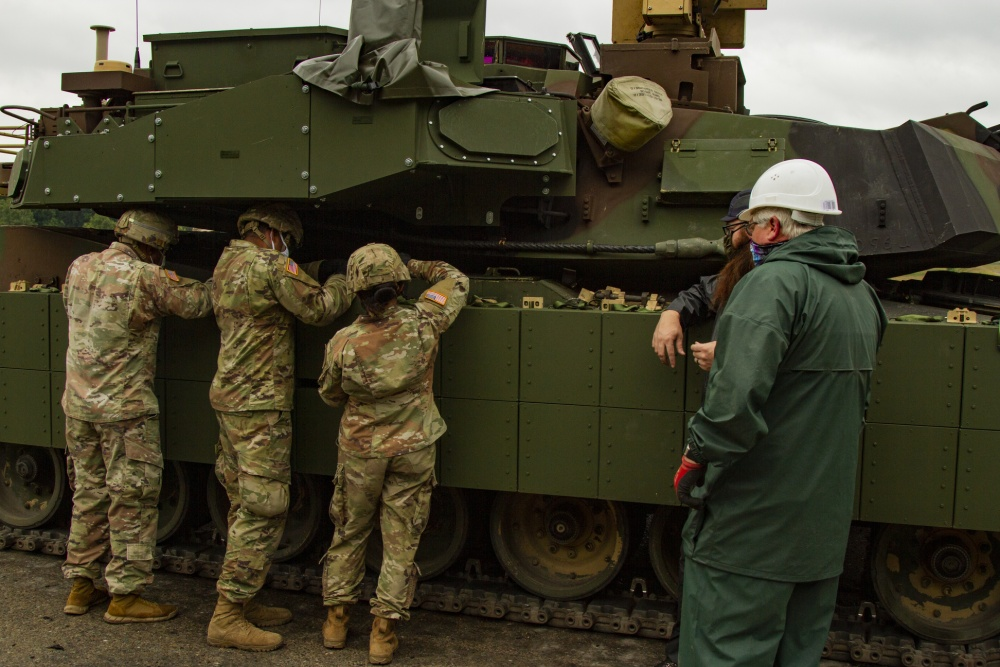 Defender Europe 20 is the first outing for the US Army's Trophy active protection system. It is visible fitted to this M1A2 sep V2, as are the mounting racks for the ARAT ERA tiles. Note the chunky armour on the front of the turret.