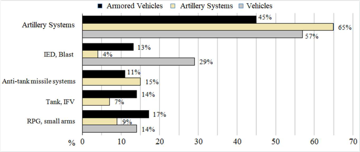 The focus on ATGMs and RPGs is an interesting one. A presentation by Ukrainian scientists earlier this year showed that the single greatest cause of AFV losses in Ukraine was artillery. Accounting for more losses than IEDs, ATGMs and Tanks combined.