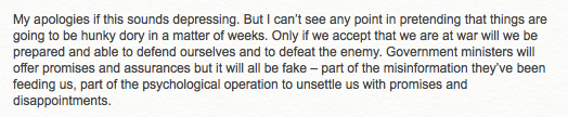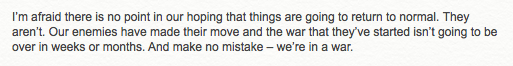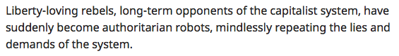 But when all of this naked authoritarianism is justified by blatant lies, the situation becomes still more outlandlish."