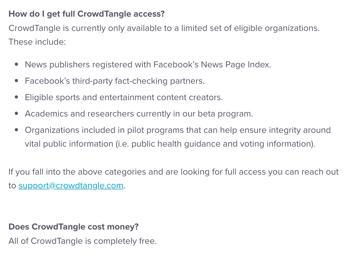 update: I have been informed by @naomishiffman that Crowdtangle no longer costs money. Which is nice. But... it's not available to anyone but journalists and researchers. So if you're a regular user, even a rich one, you're out of luck.