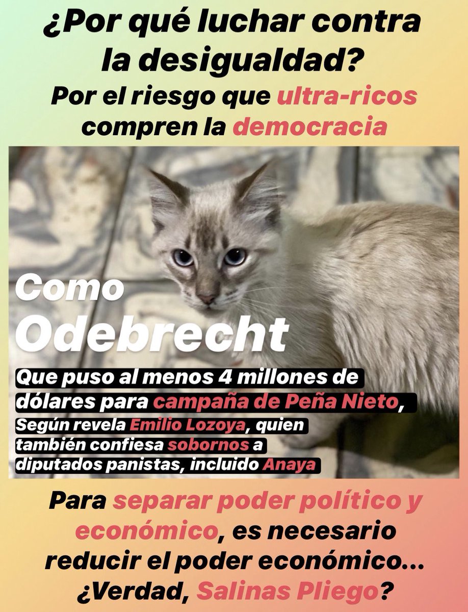 Miau. Es necesario luchar contra la desigualdad, y disminuir la riqueza extrema de los ultra-ricos, para evitar que tengan la posibilidad de comprar la democracia, como el caso Odebrecht y los millones a la campaña de Peña Nieto, vía Emilio Lozoya: