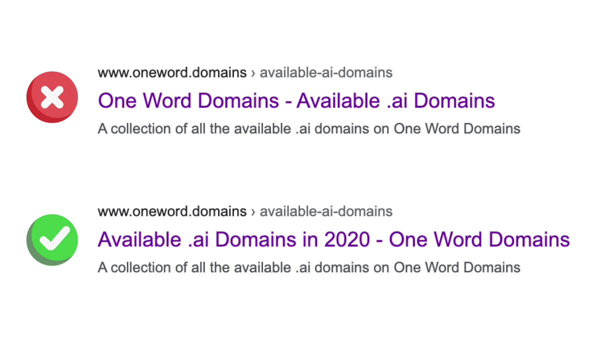 - For each of your pages, put the unique keyword at the left of the title tag.