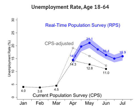 Finds continued decline in the working-age unemployment rate, but improvement greatly slowed from the prior month: -0.5 pp to mid-July versus -4.7 pp to June.