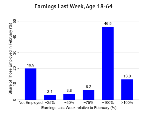Among working-age Americans who were working in February, they estimate that a THIRD had lower labor market earnings last week than in Feb, while 13% had higher earnings.