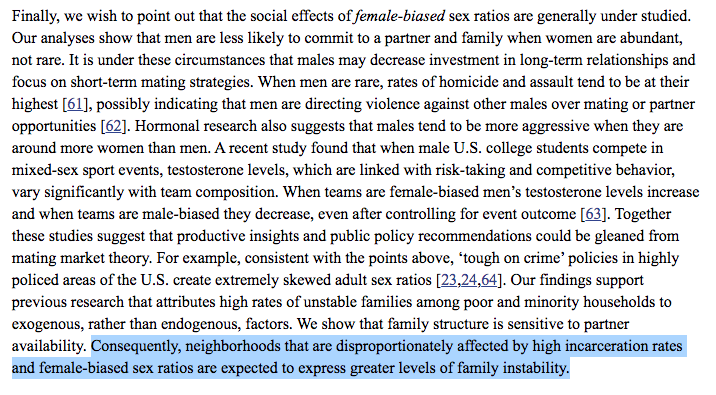 During the same period, for example, the rise of mass incarceration created dramatically skewed female > male sex ratios in many low-income black communities.