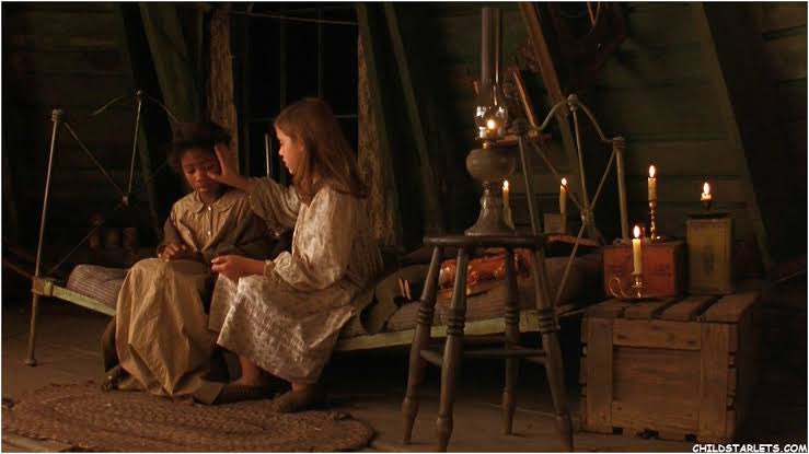 En la película, cuando piensan que Sarah es huérfana, la mandan a vivir al ático, la habitación más pequeña de la casa. A través de una puerta muy chiquita, Becky y Sara se comunican y se esconden de los demás. No es un clóset como tal, pero es su escondite.