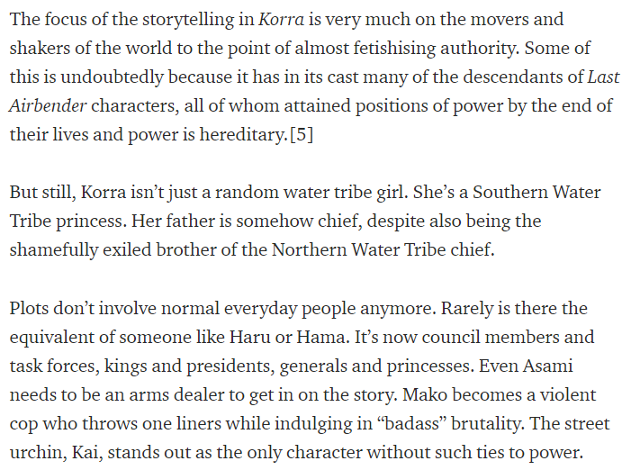 My disappointment with The Legend of Korra is well-documented, but this essay by @jeannette_ng says it better than I ever could, and gets into problems with the show that went completely over my head. medium.com/@nettlefish/th…