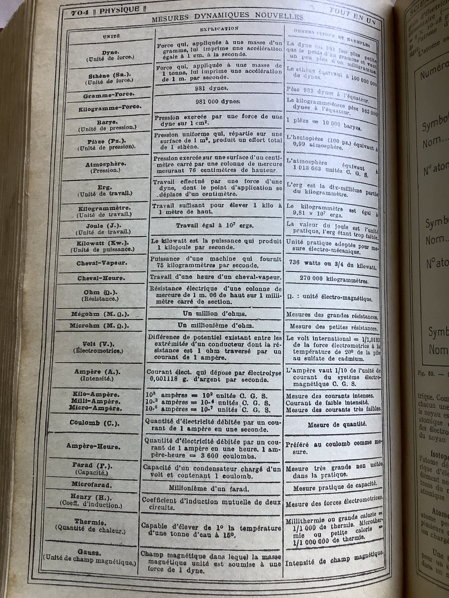 Donc rectifions ce que j’ai dit précédemment : les neutrons avaient été découverts donc c’est clairement établi. Et cette table d’unité n’a pas été mise à jour conformément aux recommendations SI de l’époque.