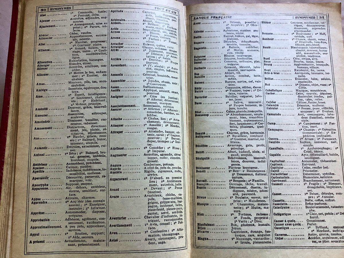 Se trouve aussi un petit condensé de dictionnaire de synonymes, ce qui est, je l’admets, bien utile en rédaction.