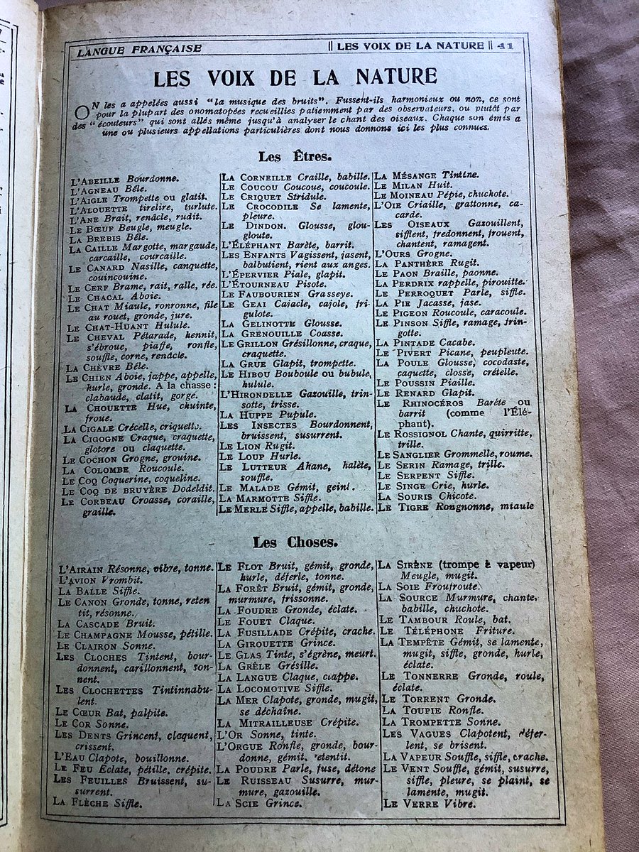 Se trouve aussi une liste d’abréviations, des "voix de la Nature" si vous avez oublié que la mésange tintine, une liste de noms d’habitants...