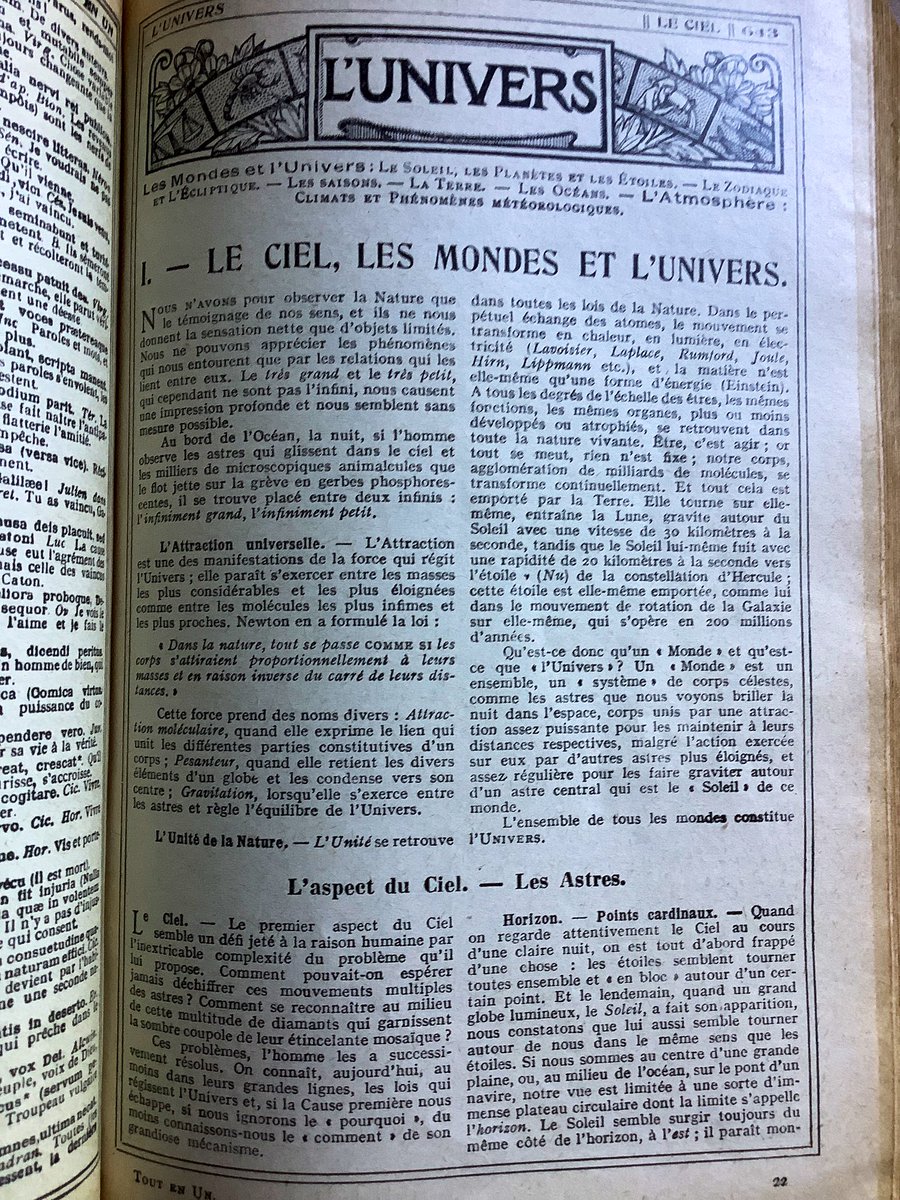 Après le dictionnaire illustré et un passage par les locutions latines, on arrive à la seconde partie intitulée "L’Univers".