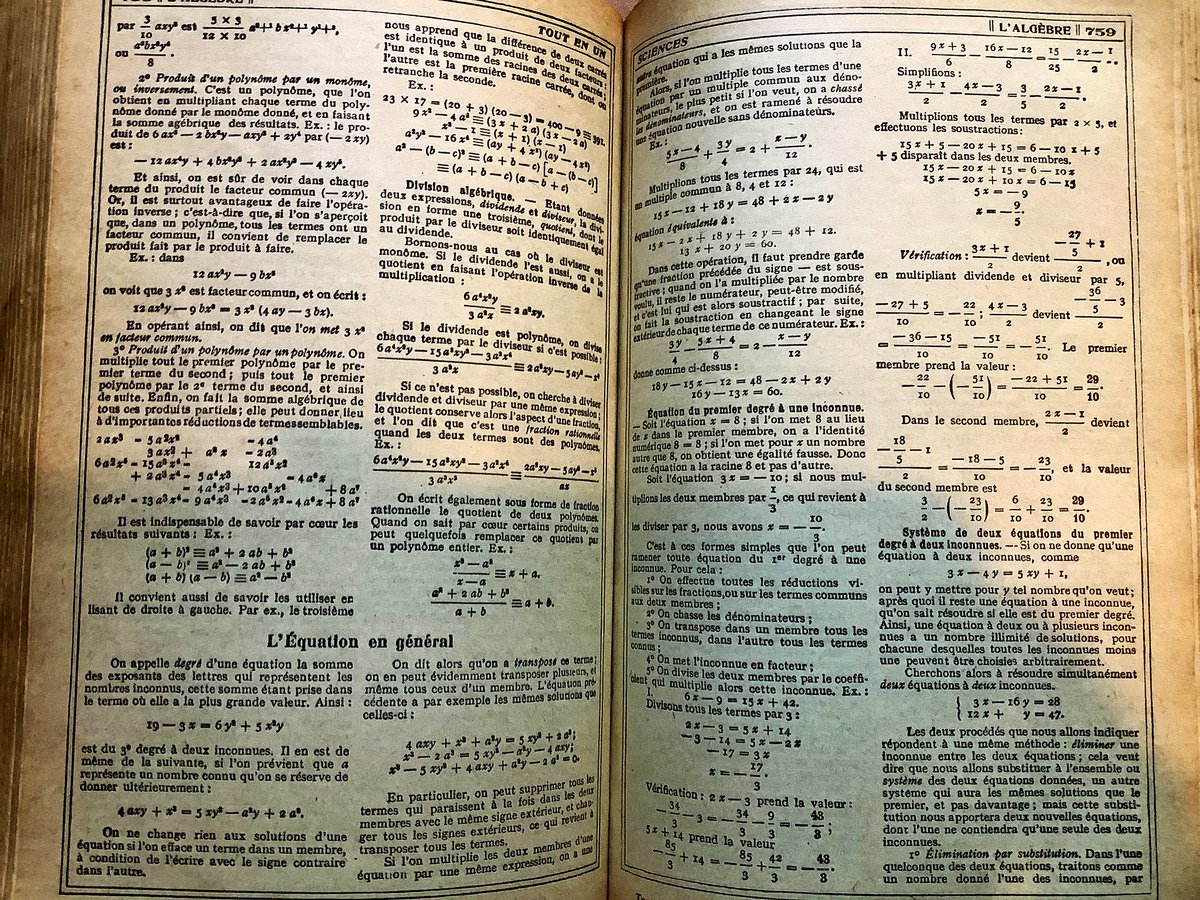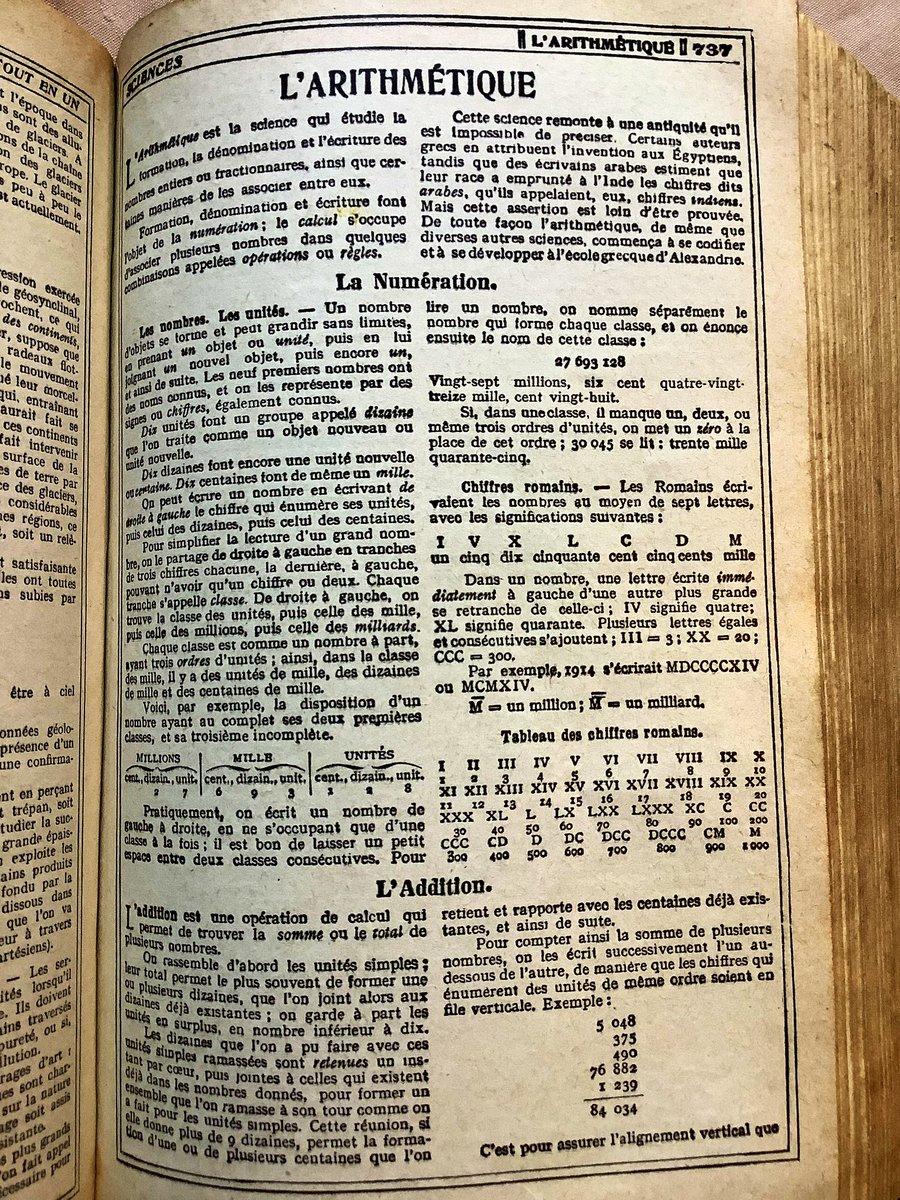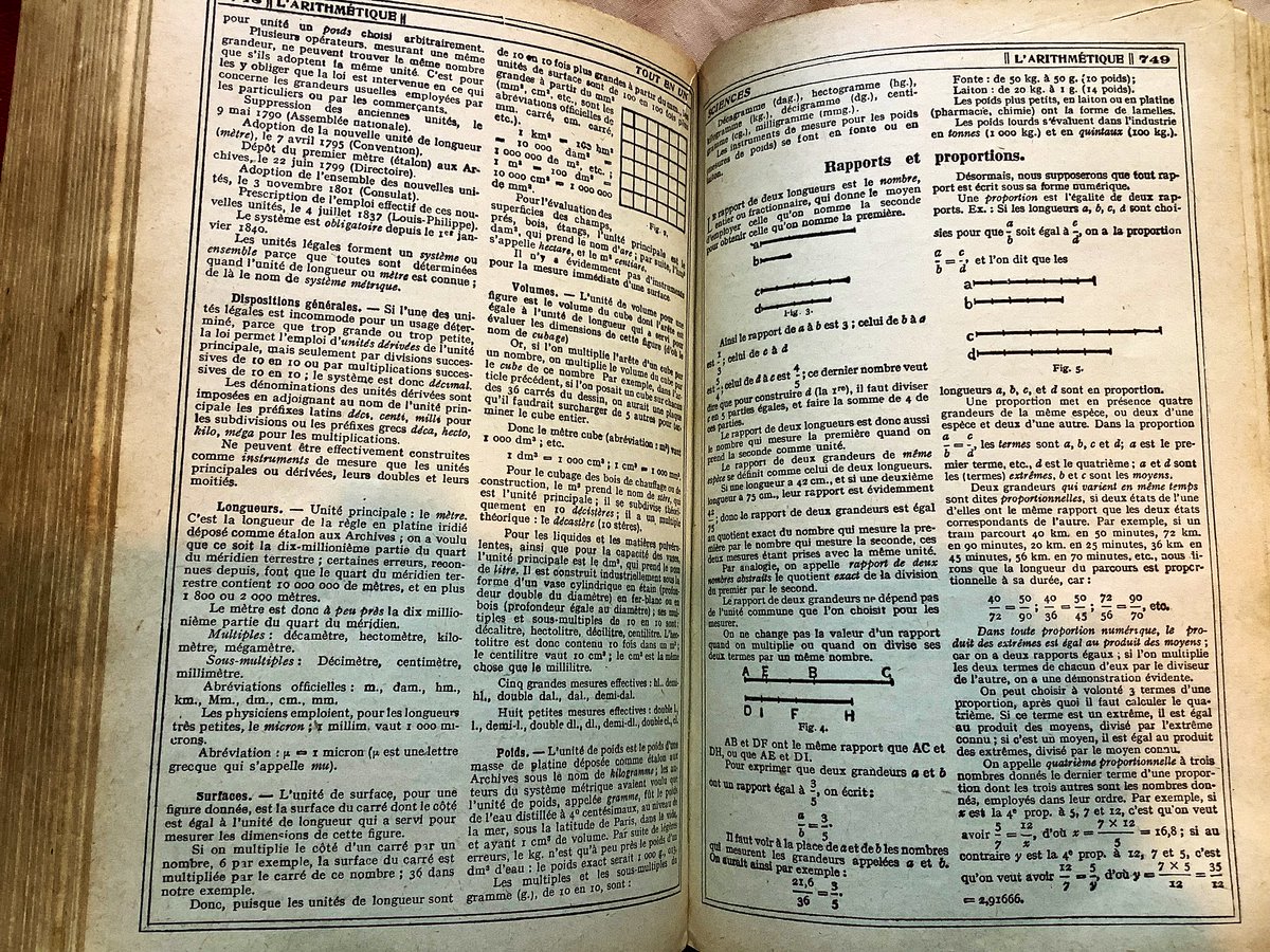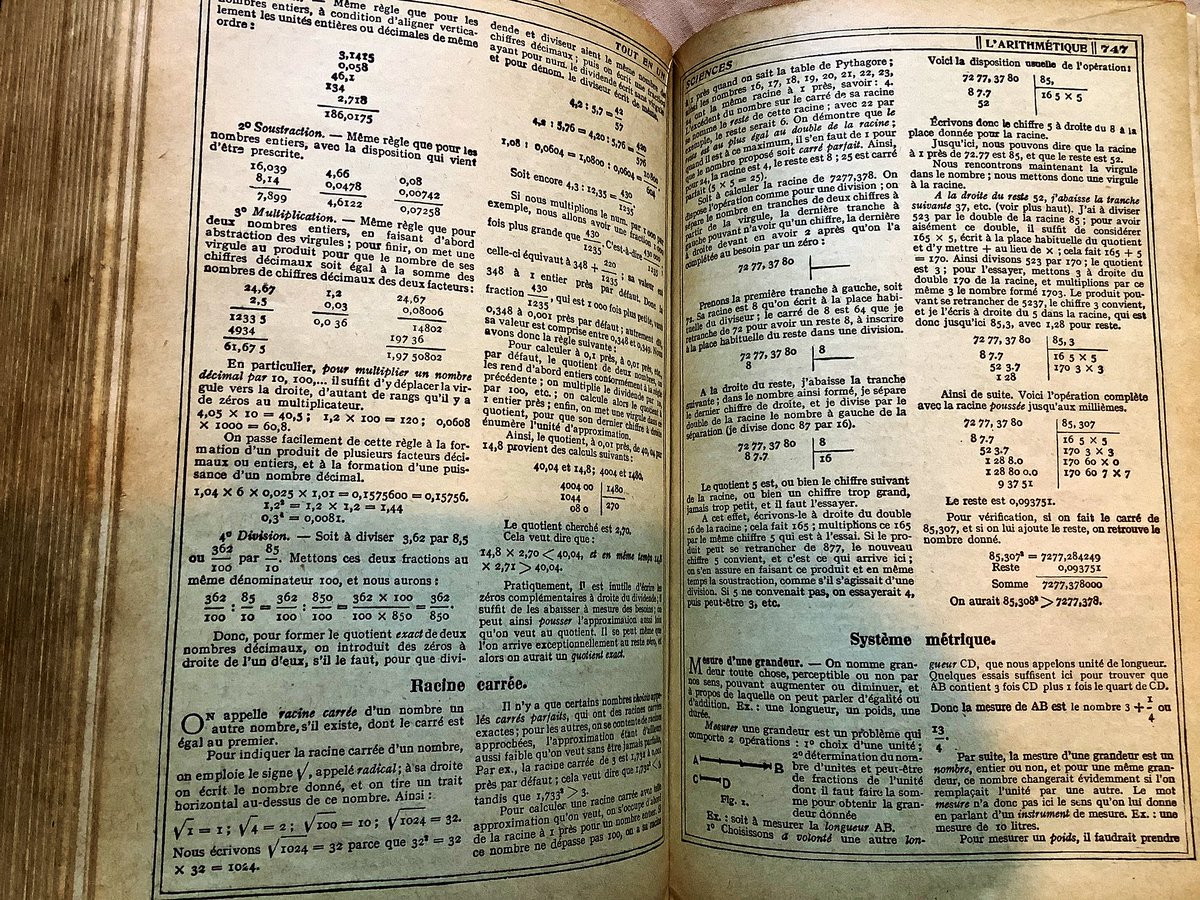Nouvelle section : l’arithmétique. Vous avez tout ce qu’il faut pour faire les opérations courantes à la main, même extraire une racine carrée. Dans cette partie est aussi inclue toute la partie sur le système métrique, les proportions et les conversions diverses.