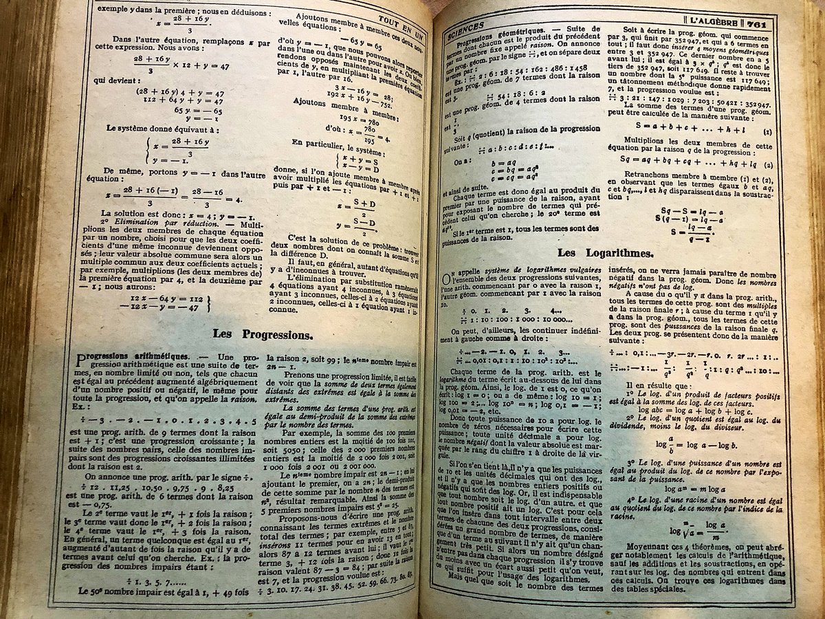 Et puis vient l’algèbre. On a vraiment les bases pour pouvoir manipuler des équations et des systèmes d’équations simples. On va même jusqu’aux suites (les "progressions") et les logarithmes.