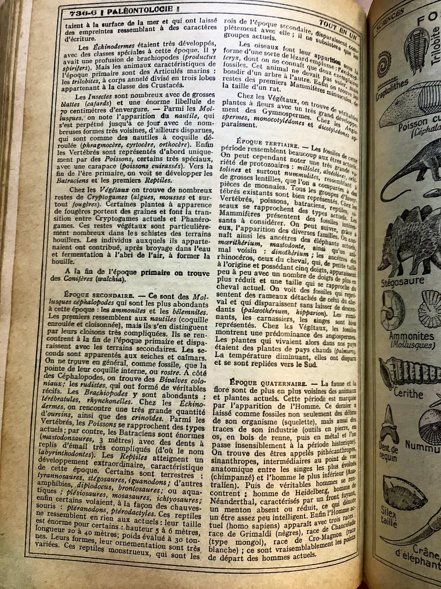 Après la paléontologie, retour aux sciences de la Terre avec la géologie. Vous pouvez trouver l’échelle des temps géologiques telles que vue à l’époque.