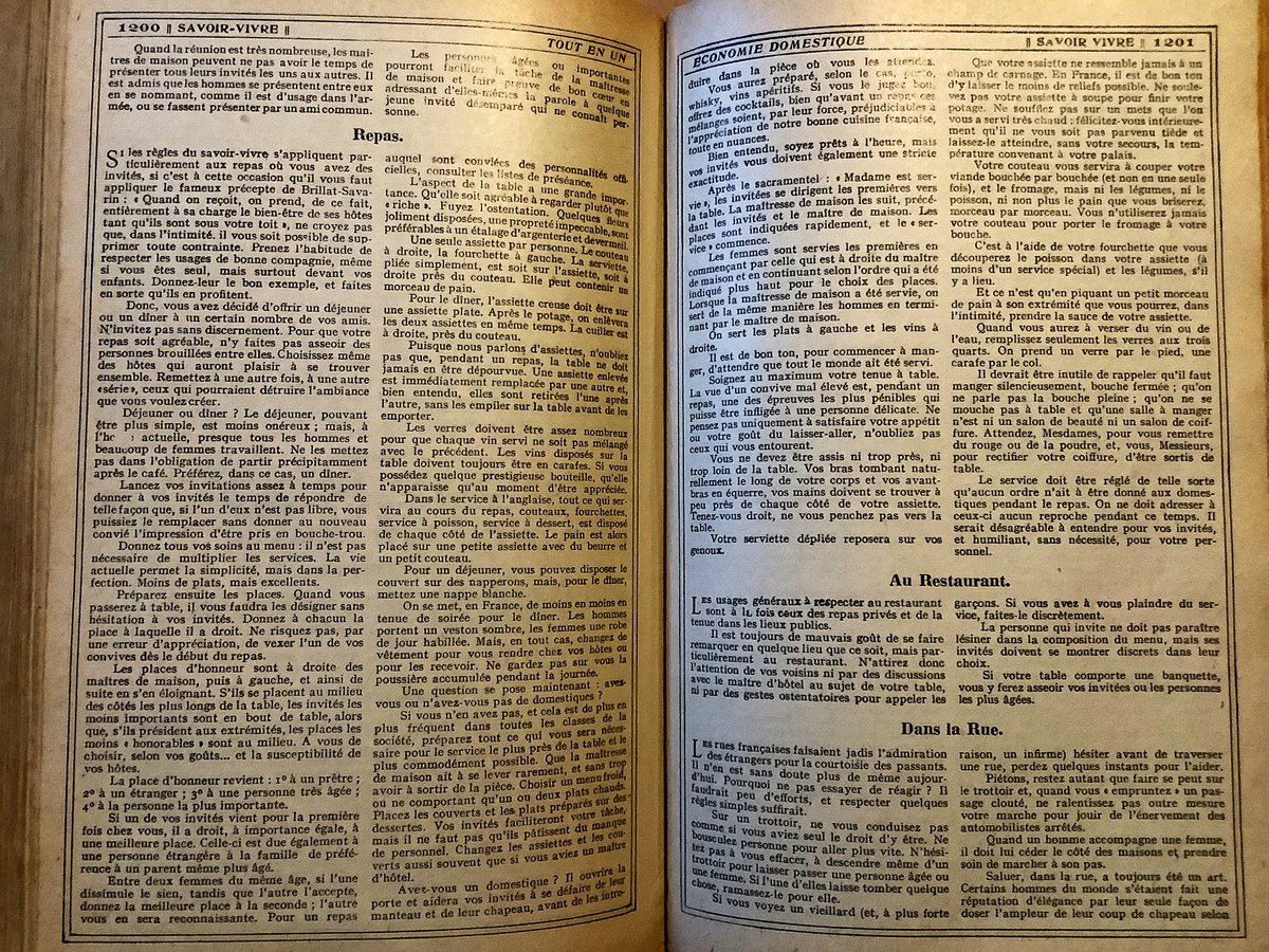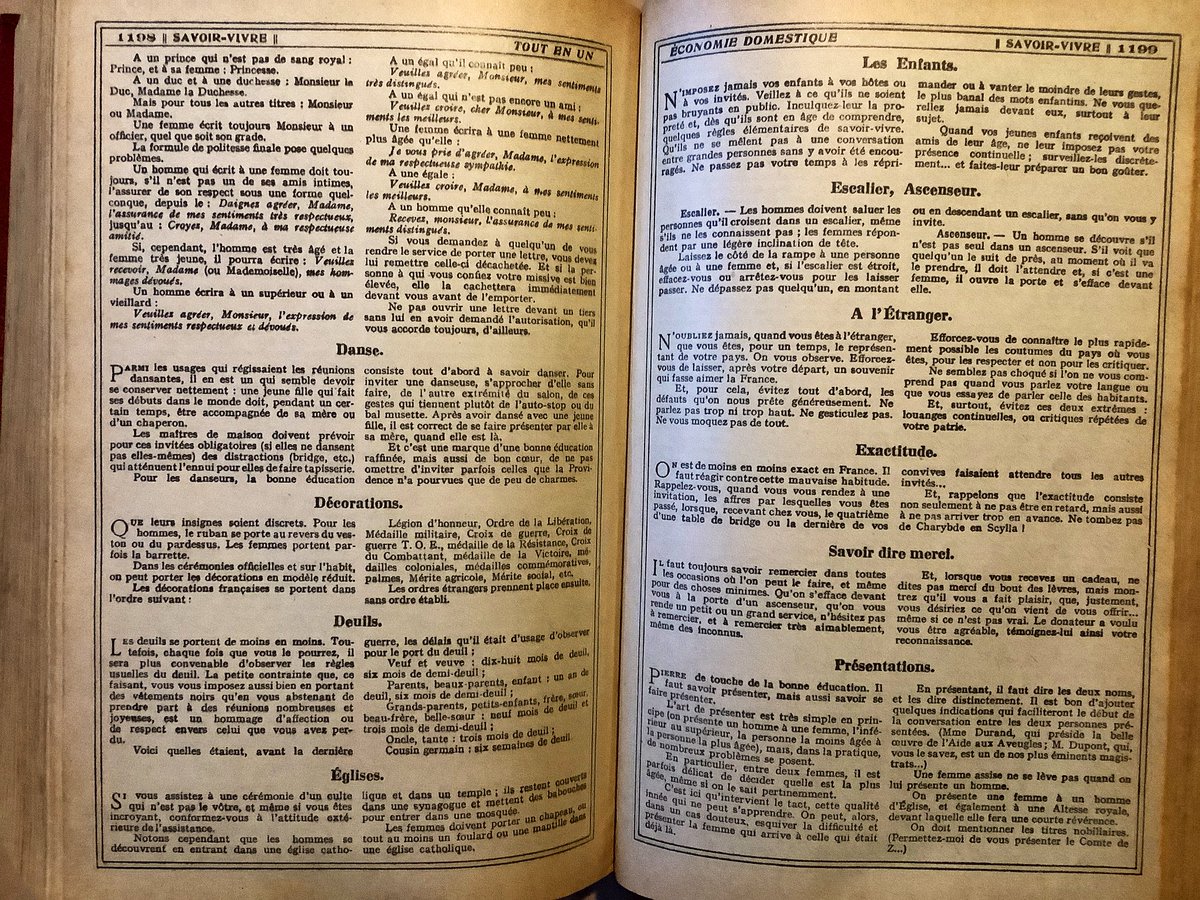Et ça commence par un petit guide de savoir-vivre, pour pouvoir bien se comporter dans la société des années 50. C’est pas exactement ce que j’imaginais trouver dans une petite encyclopédie.