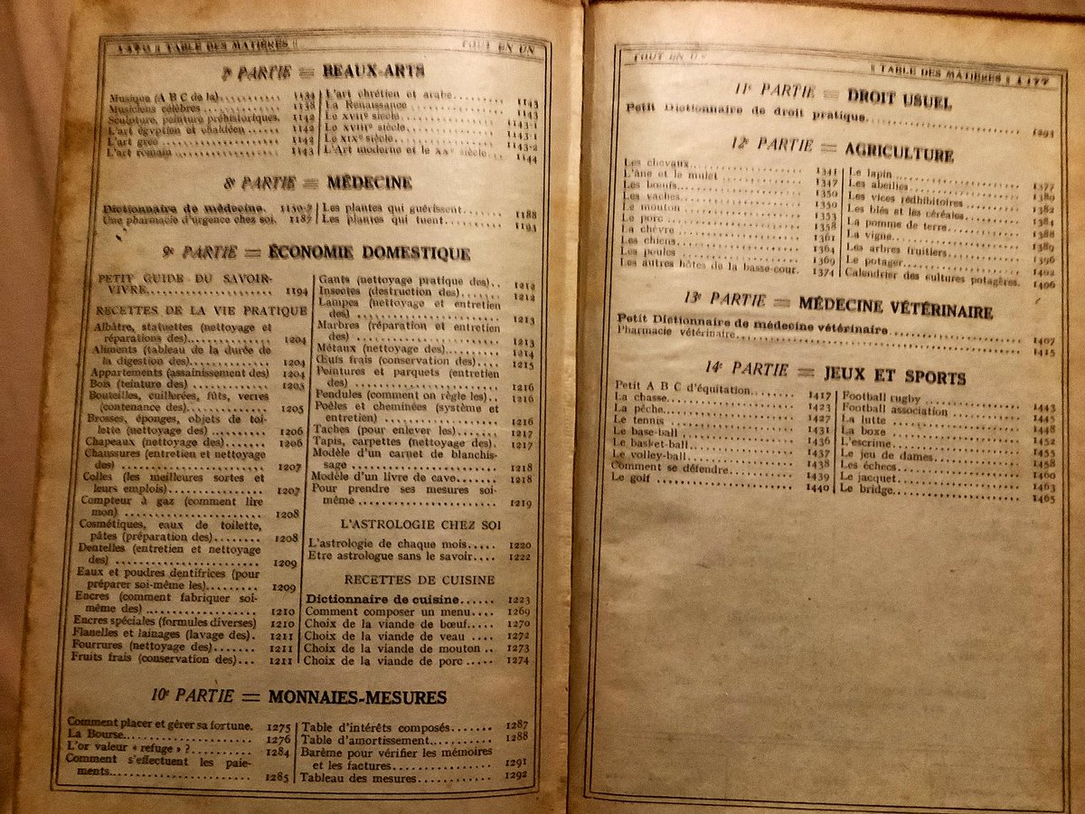Douzième partie : agriculture et élevage, accompagnée d’un petit dictionnaire vétérinaire. Si vous avez besoin de choisir un cheval, de vous occuper de votre ruche oui de protéger vos plantes potagères, vous avez les réponses.