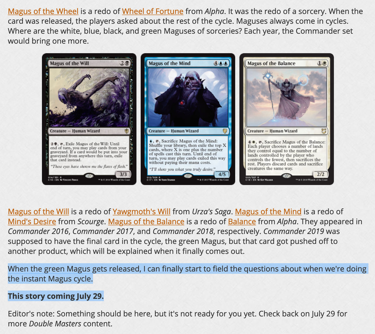 So, we're finishing the "Magus of..." cycle that calls back to Alpha cards with a new Green Magus in Double Masters?! Or somewhere else? #MTG #MTG2XM
