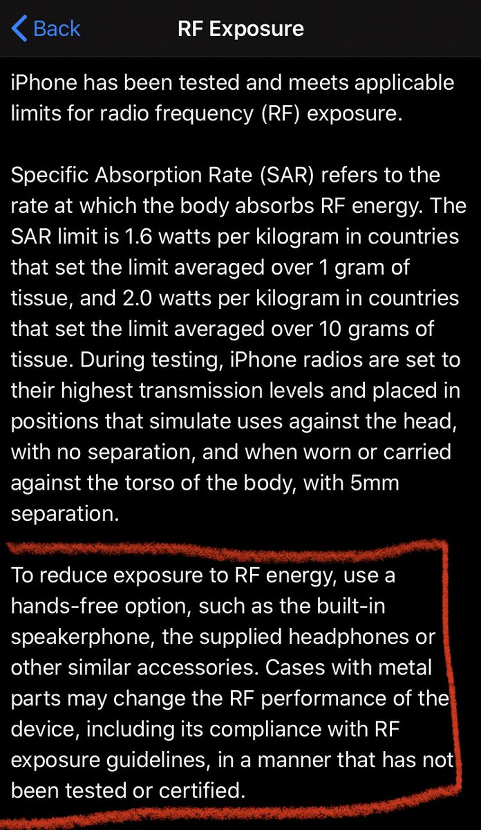 In the legal and regulatory section on the iPhone is specifies to use a hands free kit to be safe and not to expose yourself to phone calls >6 min
