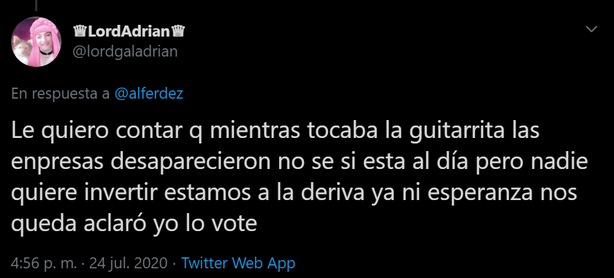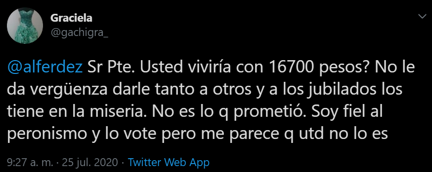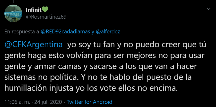 "Pero siempre digo la obsecuencia es mala consejera" un par de caractéres después de haber votado a Alberto POR ACOMPAÑAR A CRISTINS