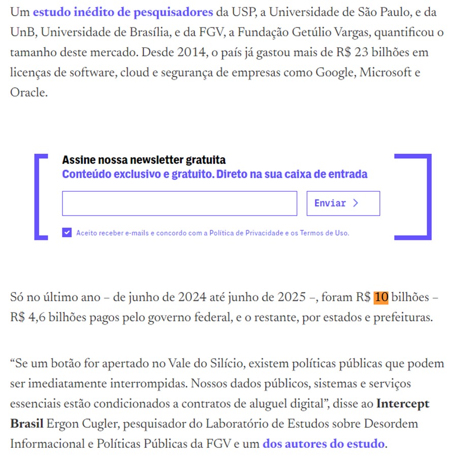 Fig. 1. Em um ano, Administração Pública gastou R$ 10 bilhões em 3 Big Techs americanas (USP/UnB/FGV).