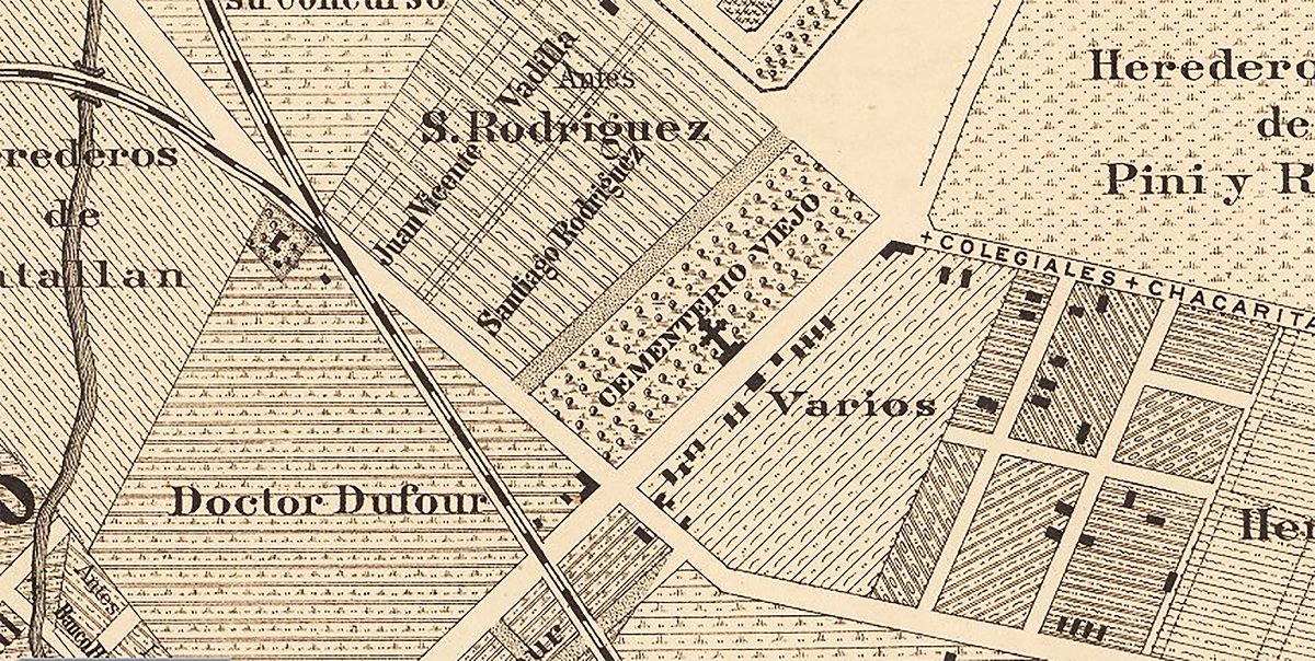 Cementerio creado a las apuradas en epidemia de fiebre amarilla después que colapsaran los que hoy son plaza España y parque Ameghino. Se le puso en tiempo récord ferrocarril para llevar muertos.