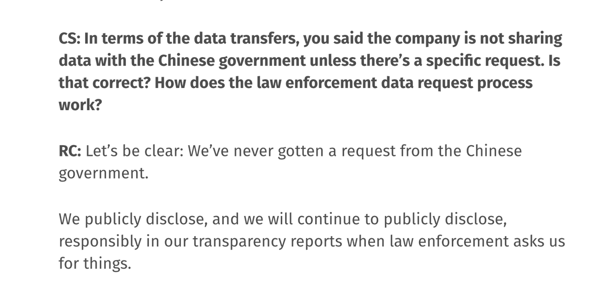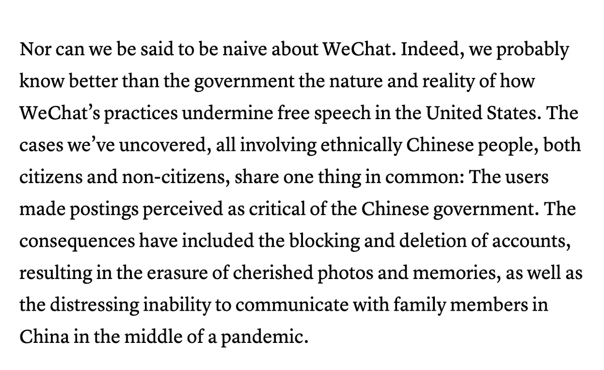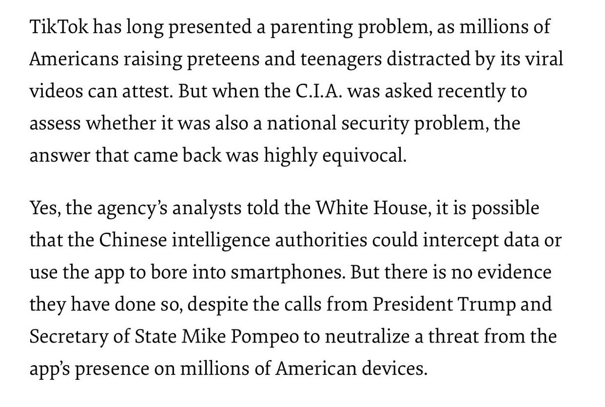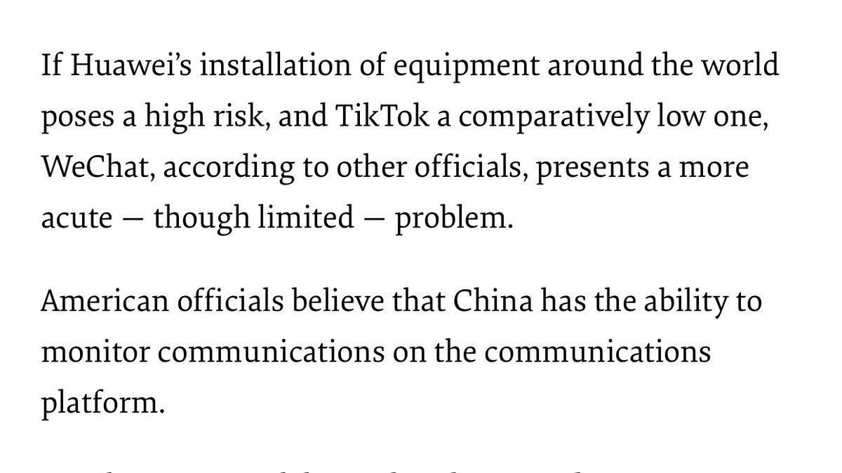 TikTok will compound in importance — and threat — everyday as it becomes the next Facebook. While WeChat may not grow, it would probably be leveraged more often, especially in places like Hong Kong.