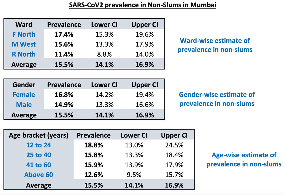 Areas selected:Three wards (R-North, M-West and F-North) in Mumbai were chosen based on: (a) City and Suburban areas (b) East, West and North areas and (c) representative of areas with low to high prevalence based on reported cases on 02/06/20