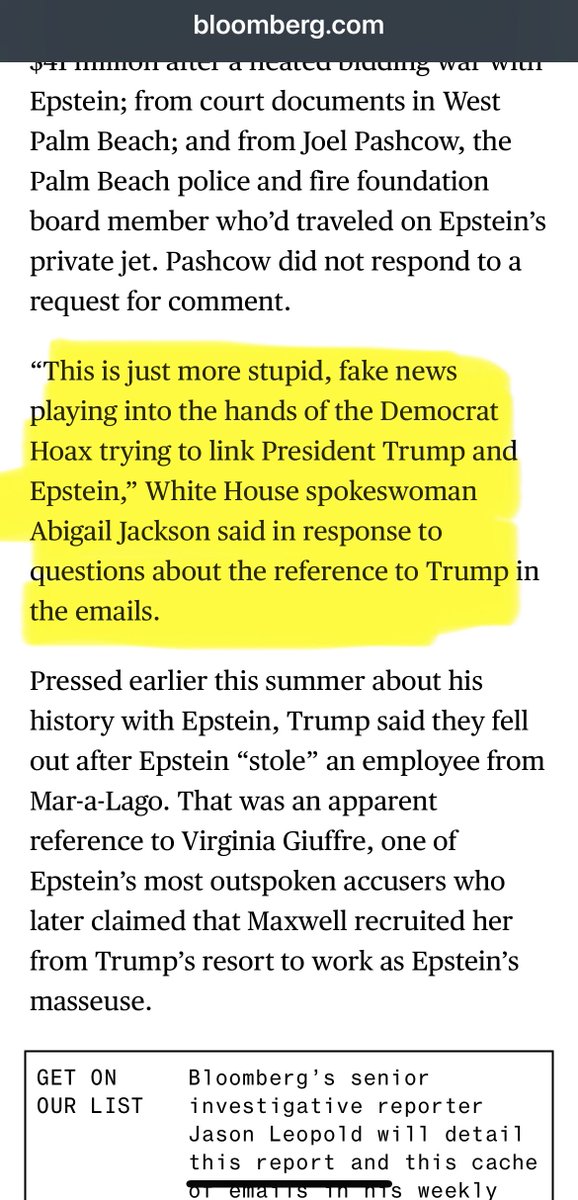 🧵 This article is extremely long and extremely damning. For Maxwell, for Dershowitz, for Blanche and for Trump consequently. Evidence item #1 showing Trump is in trouble and the story shows things they don’t want revealed? The WH response to the story.