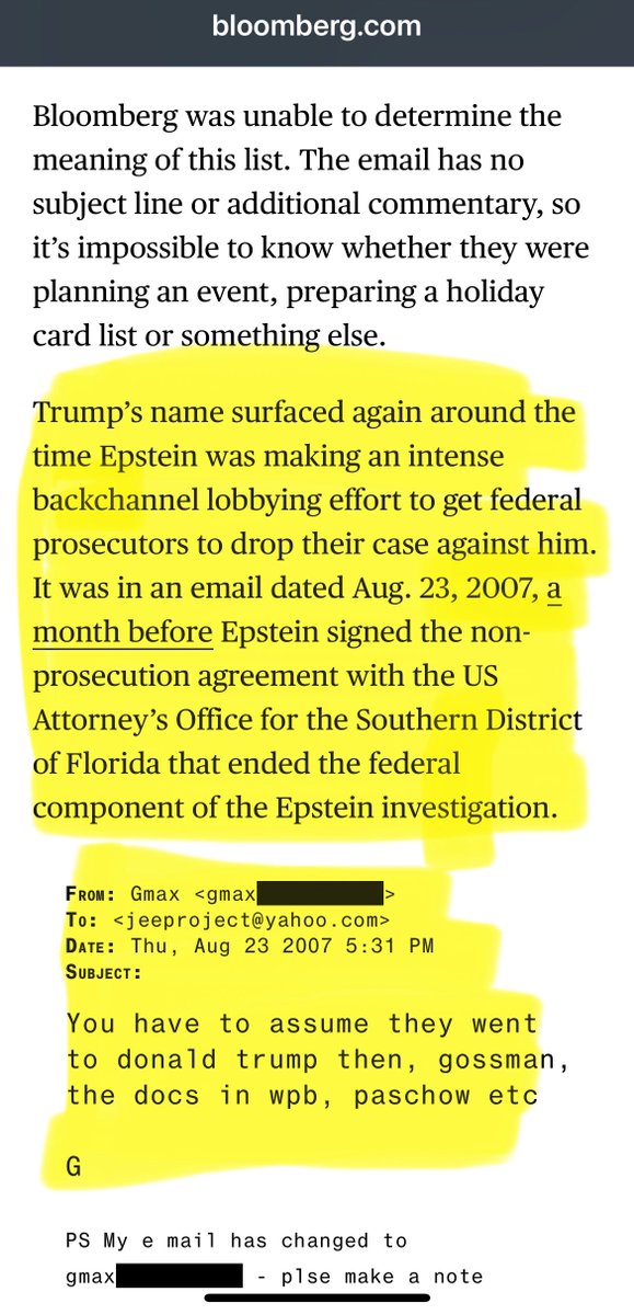 These are the instances where Trump is being directly mentioned in the very frequent and intense email exchanges between Epstein and Maxwell, directly taken from the cache of emails Bloomberg has access to. Note: this is just ONE of multiple email accounts Epstein used.