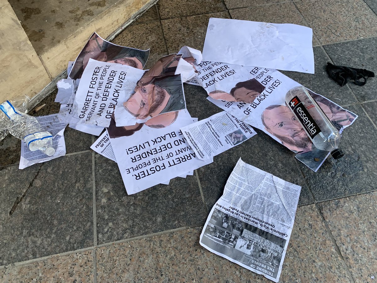 Here are some of the flyers on the ground at the memorial for Garrett Foster. Whitney Mitchell, Foster’s fiancée, will not be out protesting tonight according to her mom. @KVUE