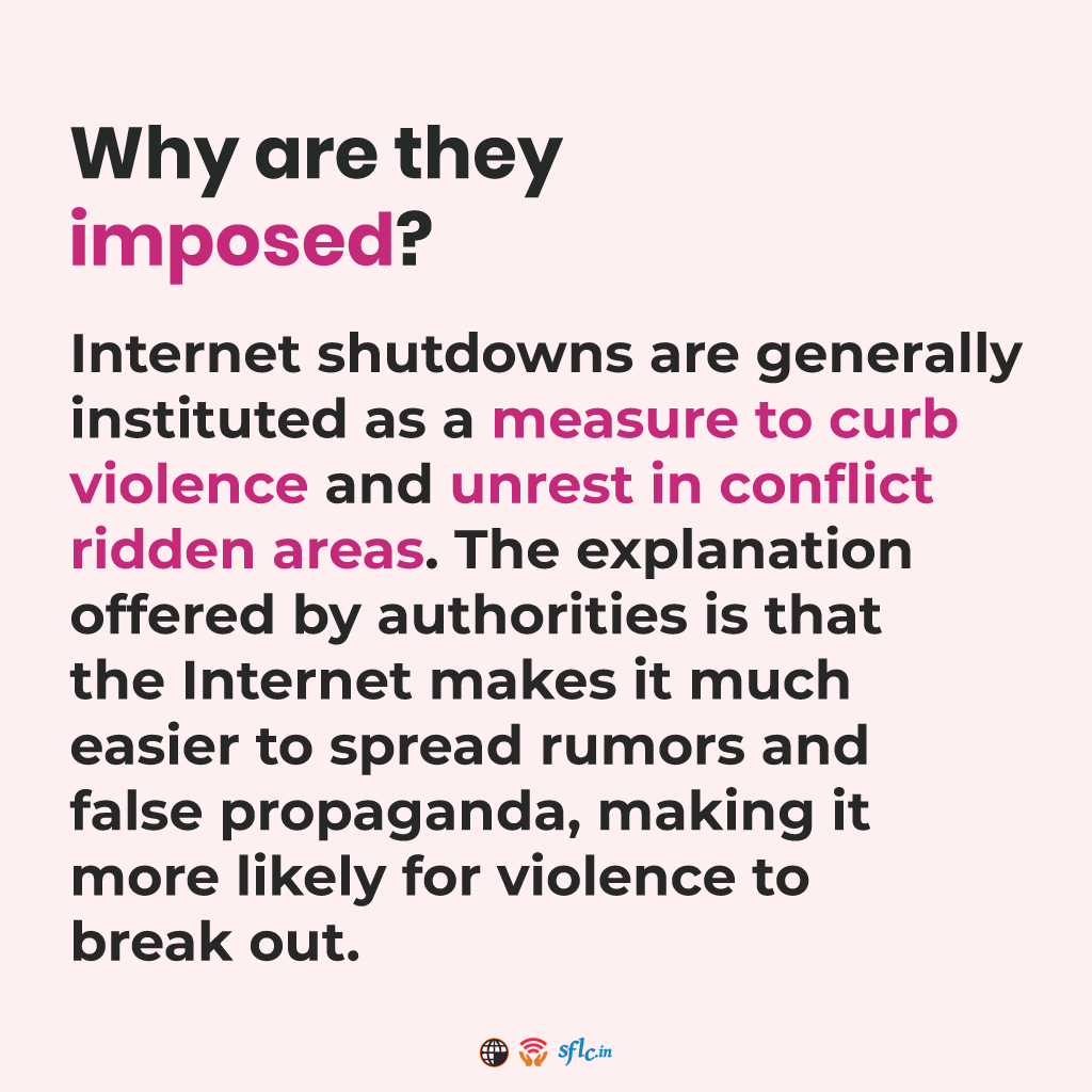 Internet shutdowns are generally instituted as a measure to curb violence and unrest in conflict ridden areas. #LetTheNetWork#keepiton
