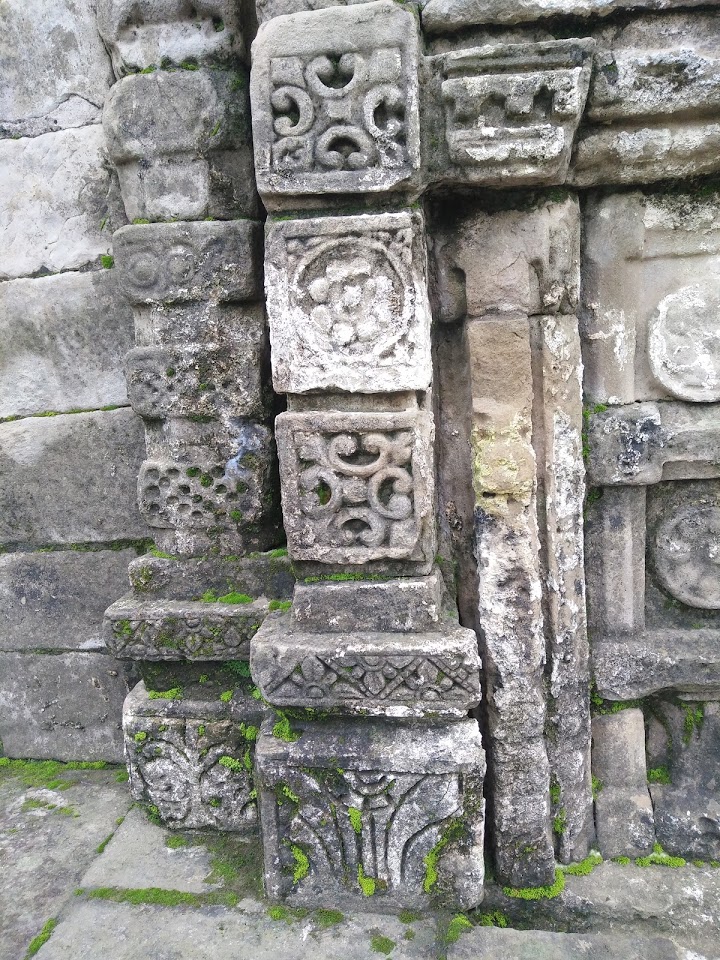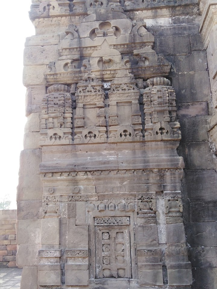 Few surviving carving works on columns and wall of the temple Ganesha on the top of the column . And floral design work carved on the wall of the temple.