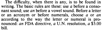 Veamos un ejemplo que a todo el mundo le suena y que no suele estar claro: cuándo se pone a o an. En la siguiente palabra debo fijarme en: