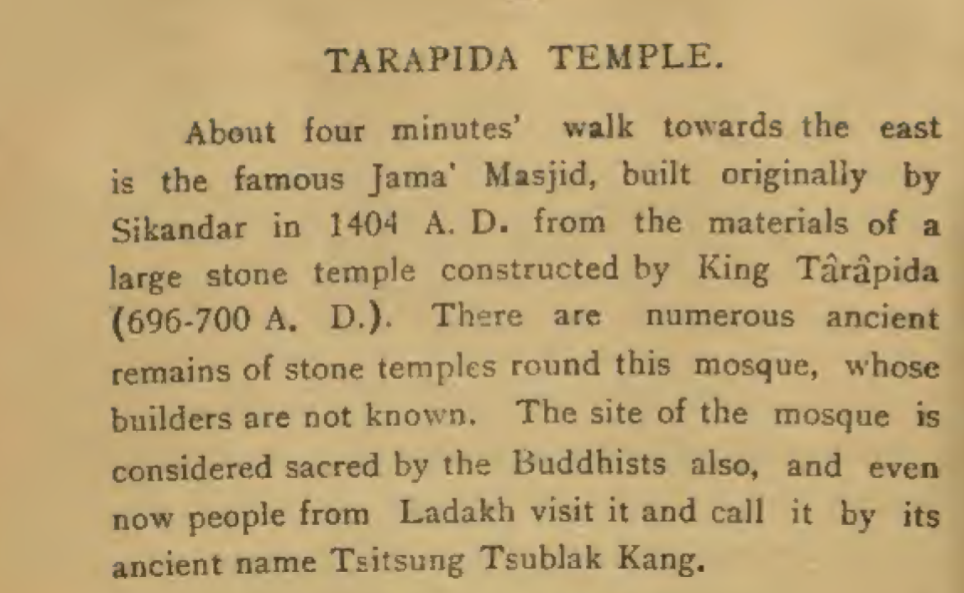 It was originally Buddhist. Was destroyed by Sikandar Butshikan & converted into Mosque.