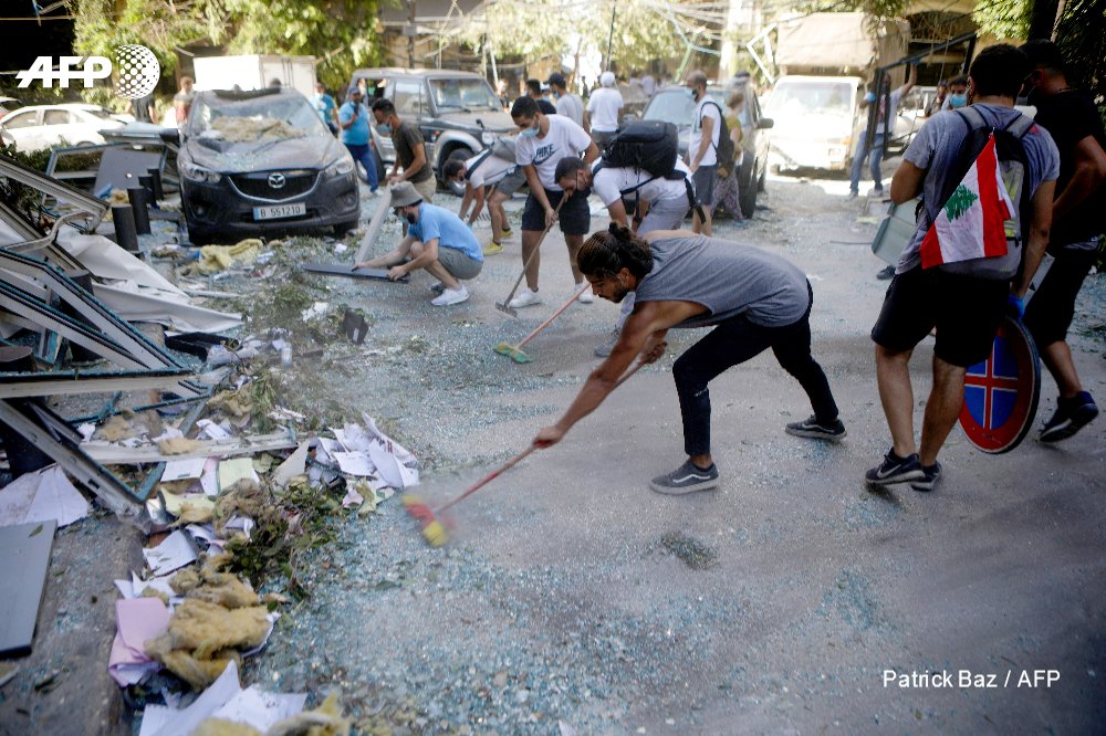 A spontaneous cleanup operation is underway, a glimmer of solidarity after a devastating night. A few civil defence workers could be seen, but were vastly outnumbered by volunteers