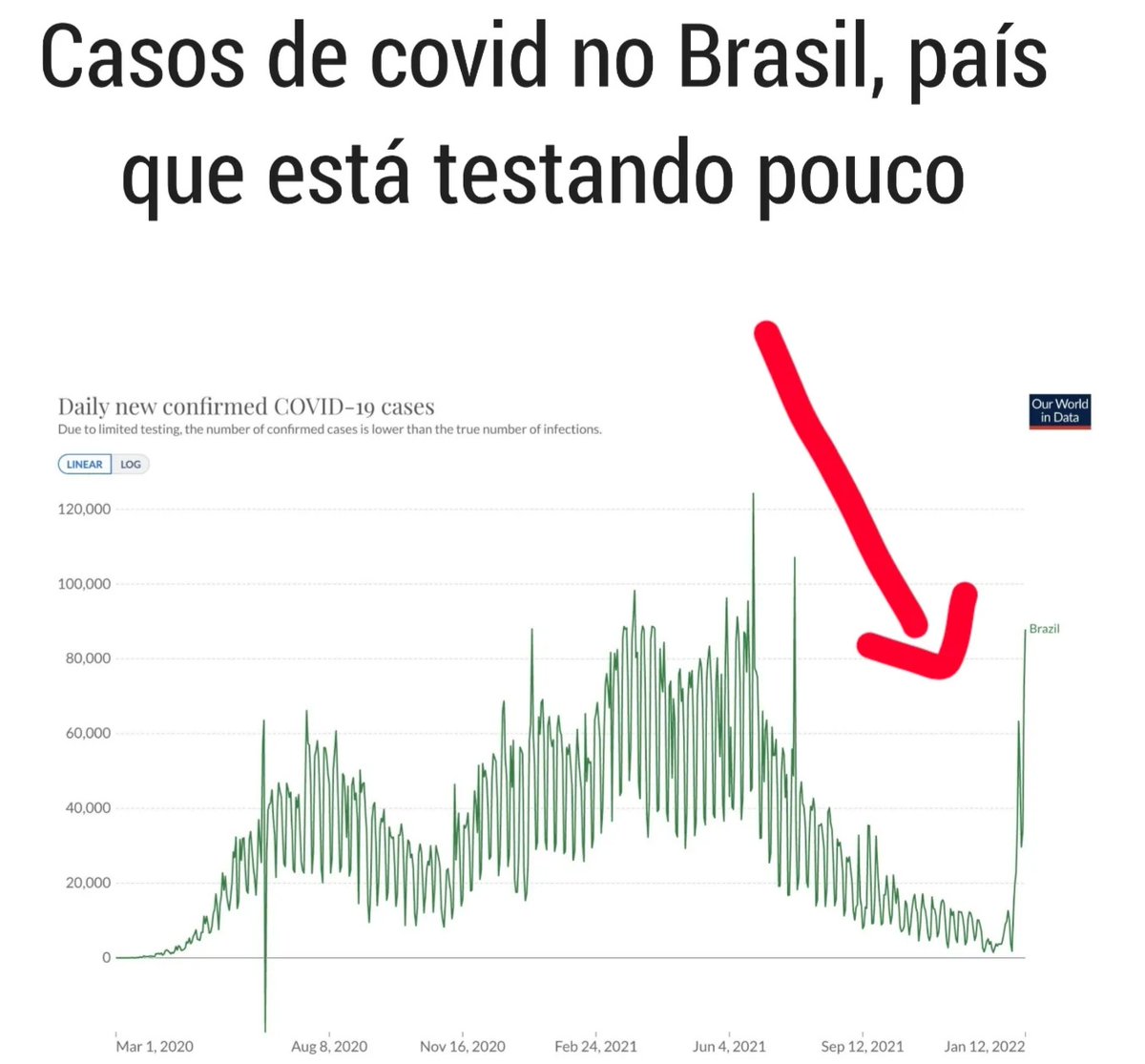 Dois gráficos que mostram a explosão da onda ômicron no Brasil.