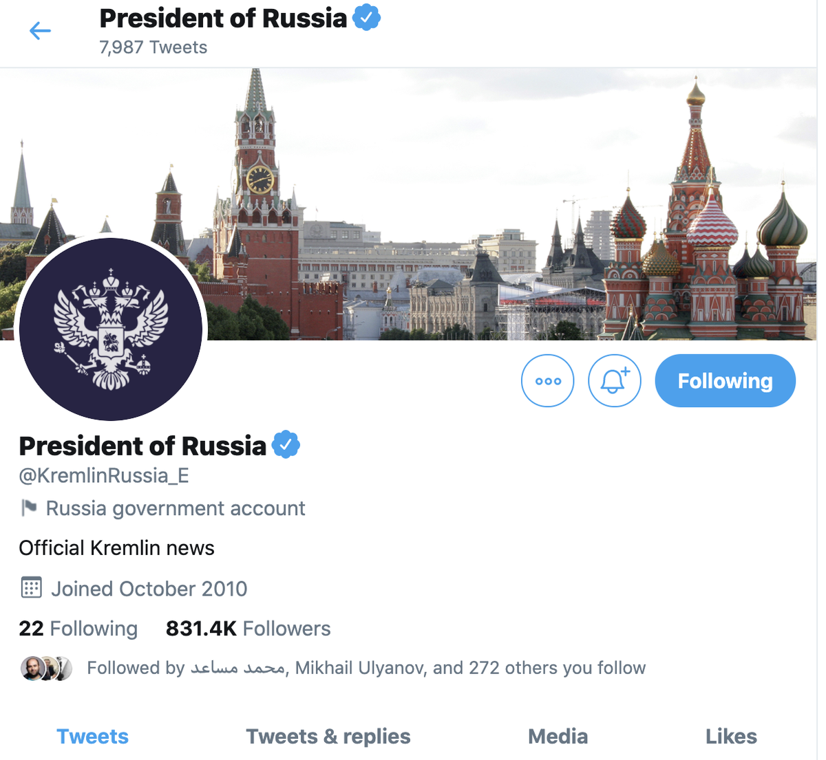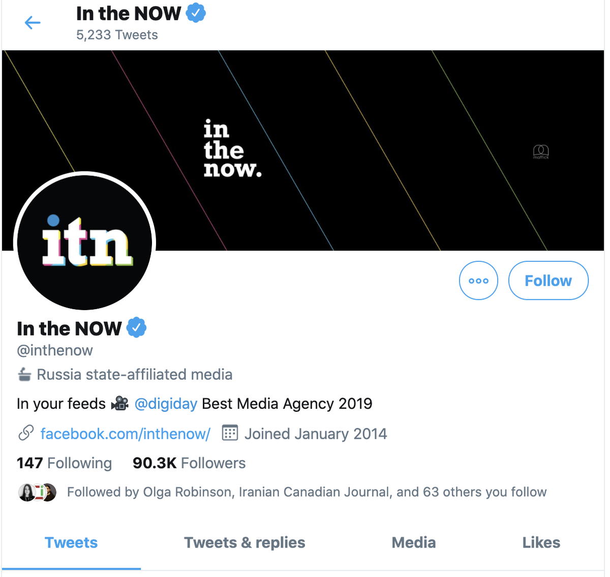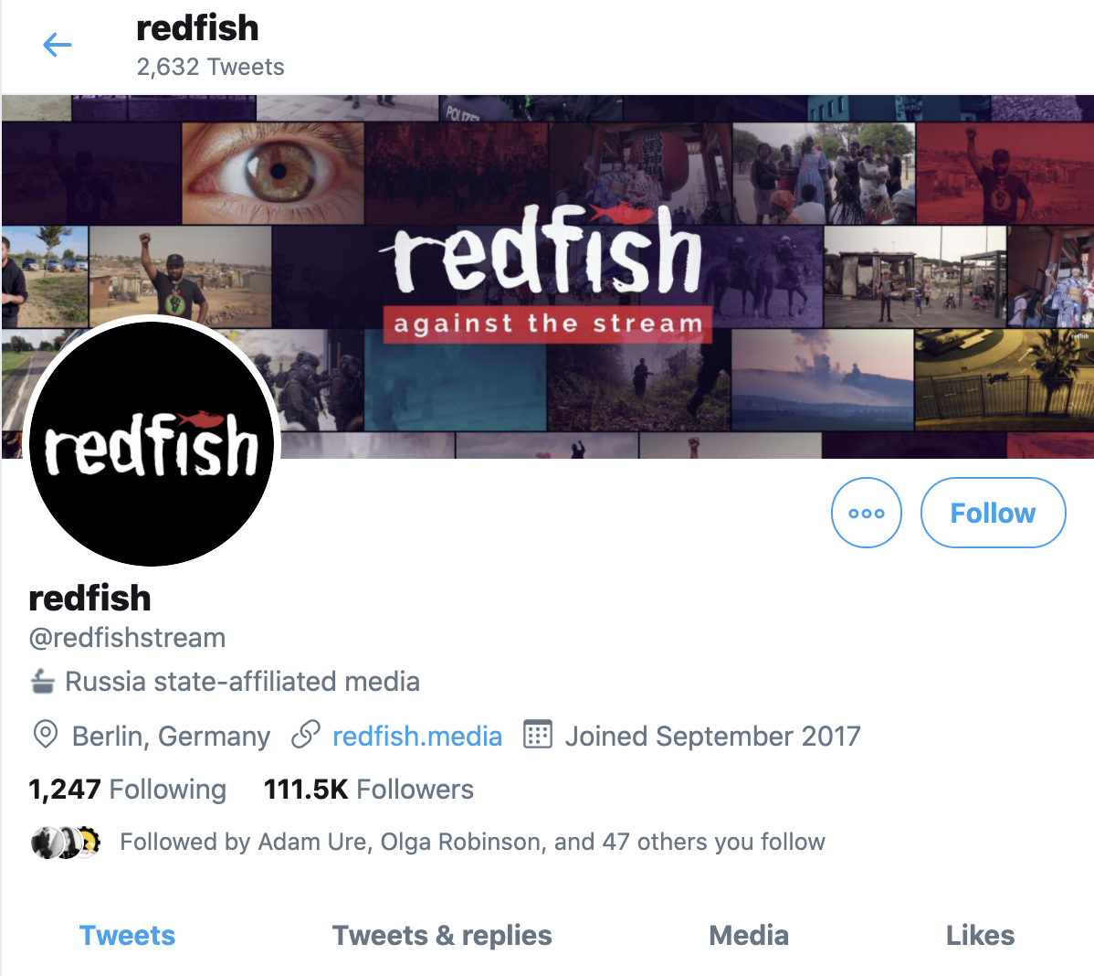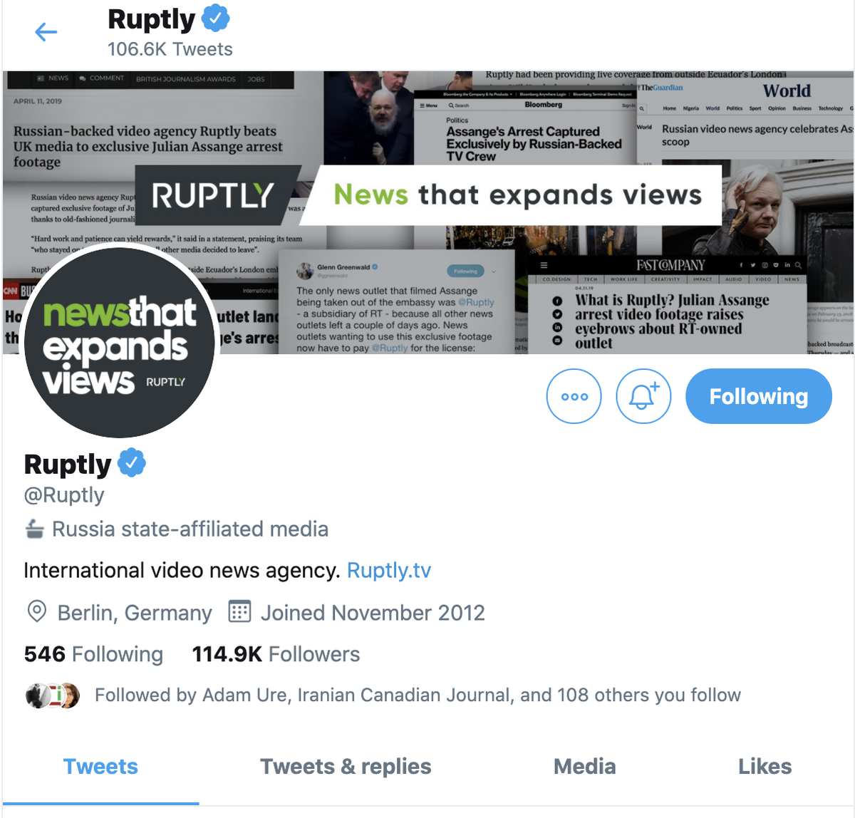 Three other Russian outlets that have labels: @RTUKnews, state-owned @tvrussia1, and Sputnik's Persian language account
