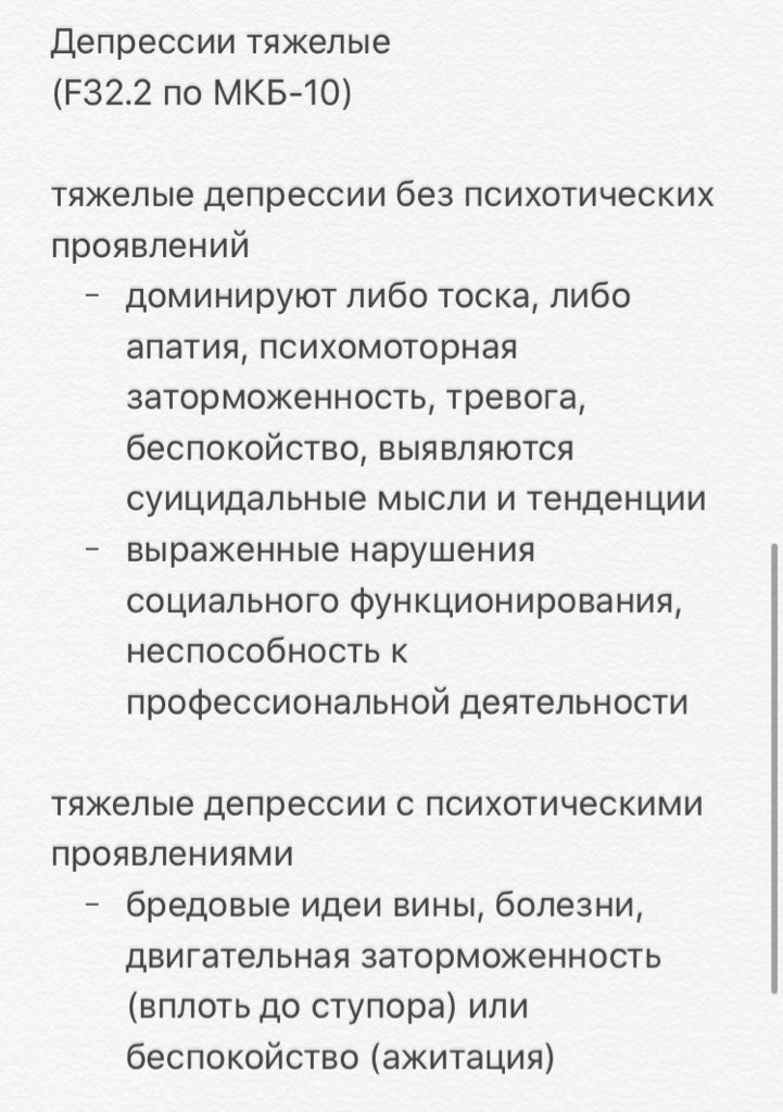 Депрессия с бредом и галлюцинациями. Их содержание может соответствовать депрессивному аффекту (быть конгруэнтным ему, т.е. идеи самоуничижения) или несоответствовать (быть неконгруэнтными аффекту, например, идеи преследования).
