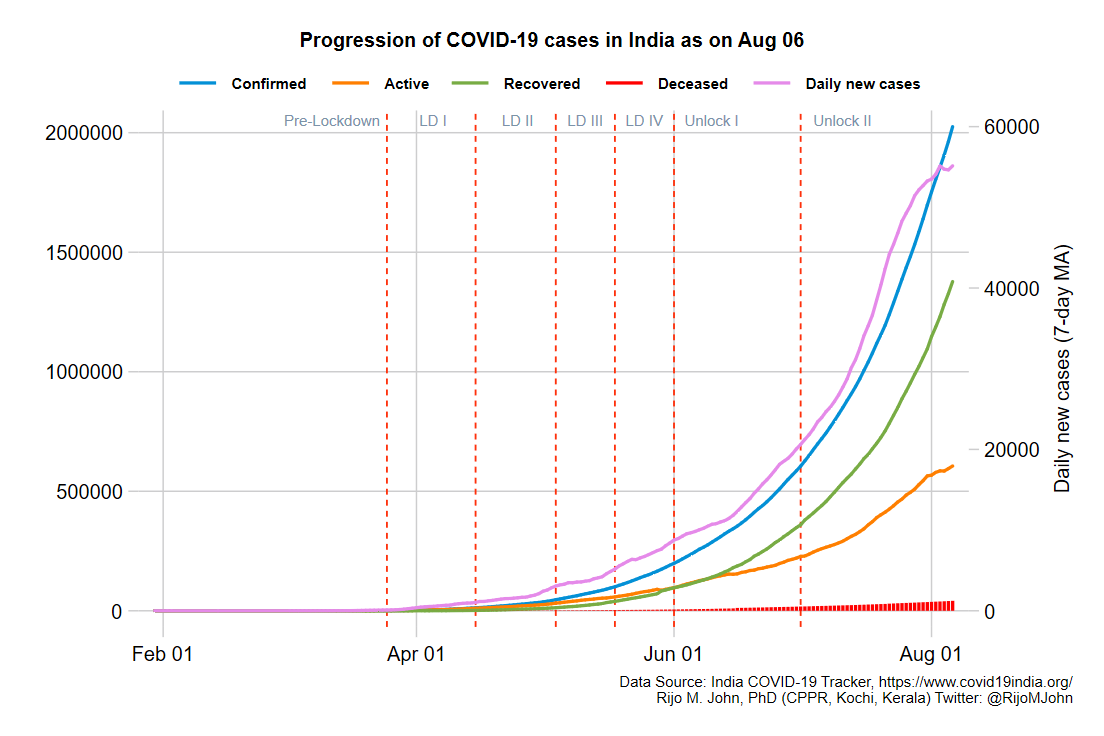 👉6 Aug: India crossed 2M reported #COVID19 cases & 41638 deaths.