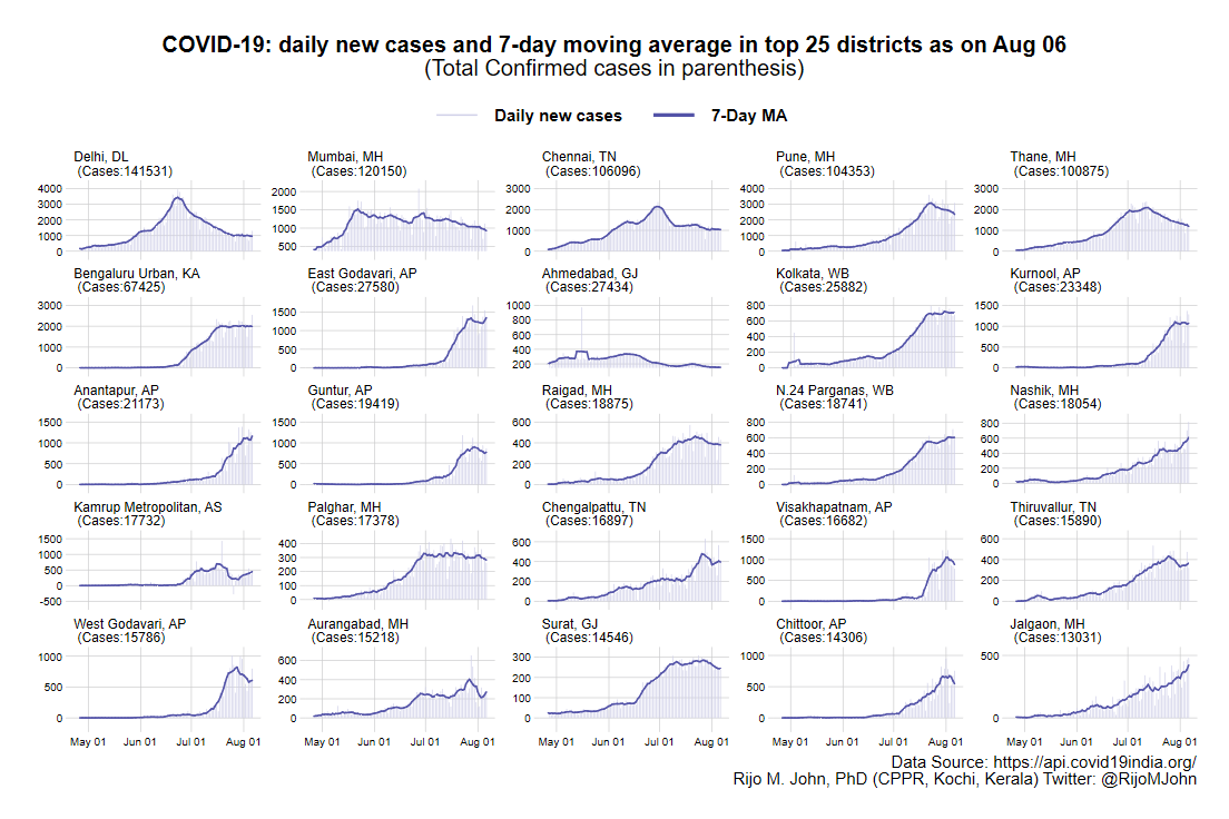 While some of the big burden states seem to have either reduced the daily new cases or plateaued, at least for now, there are others who see daily new highs. 33 States/UTs now have at least a 1000+ #COVID19 cases. (4/6)
