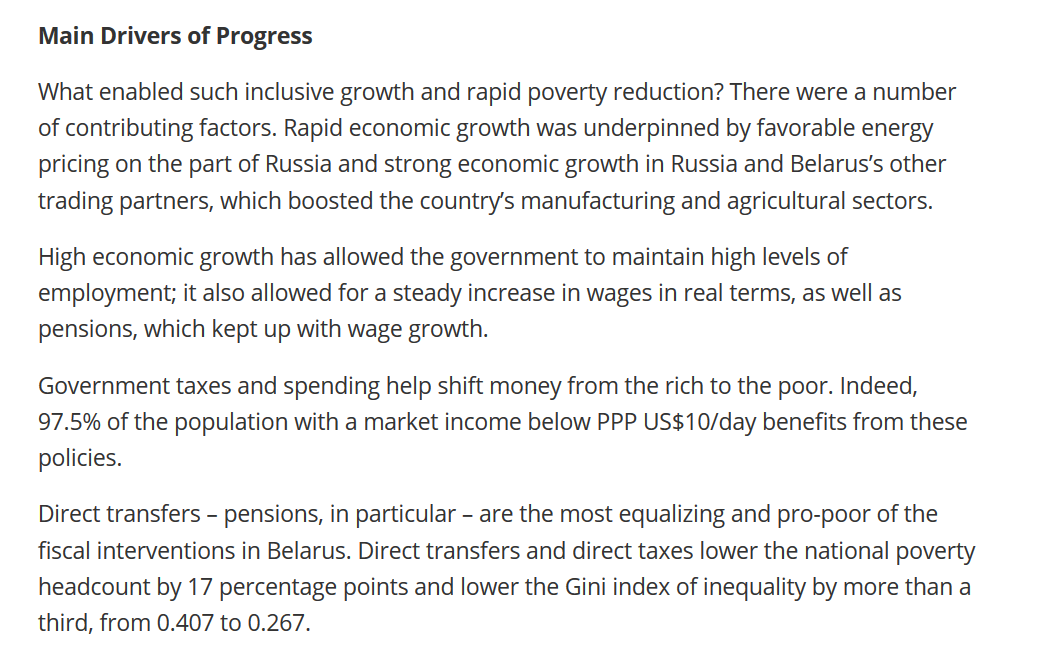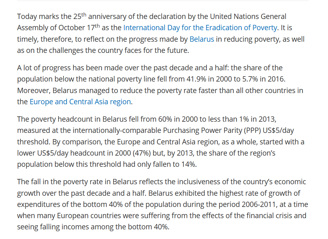 Belarus reduced "the poverty rate faster than all other countries in the Europe and Central Asia region"