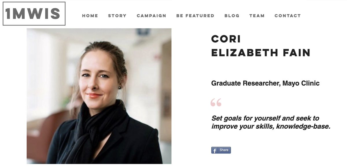 Meet Cori Elizabeth Fain! Cori is a graduate researcher looking at neuro-immunology! Her project is focused on the role of the immune system in the pathogenesis of cerebral malaria. Keep up the great work!