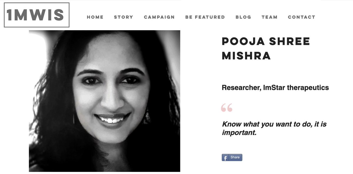 Hey Pooja Shree Mishra! She is a Researcher who is looking for the clues to understand how neurons die in neurodegenerative disorders, and what can we do to prevent or treat it. Wow, what a role model!