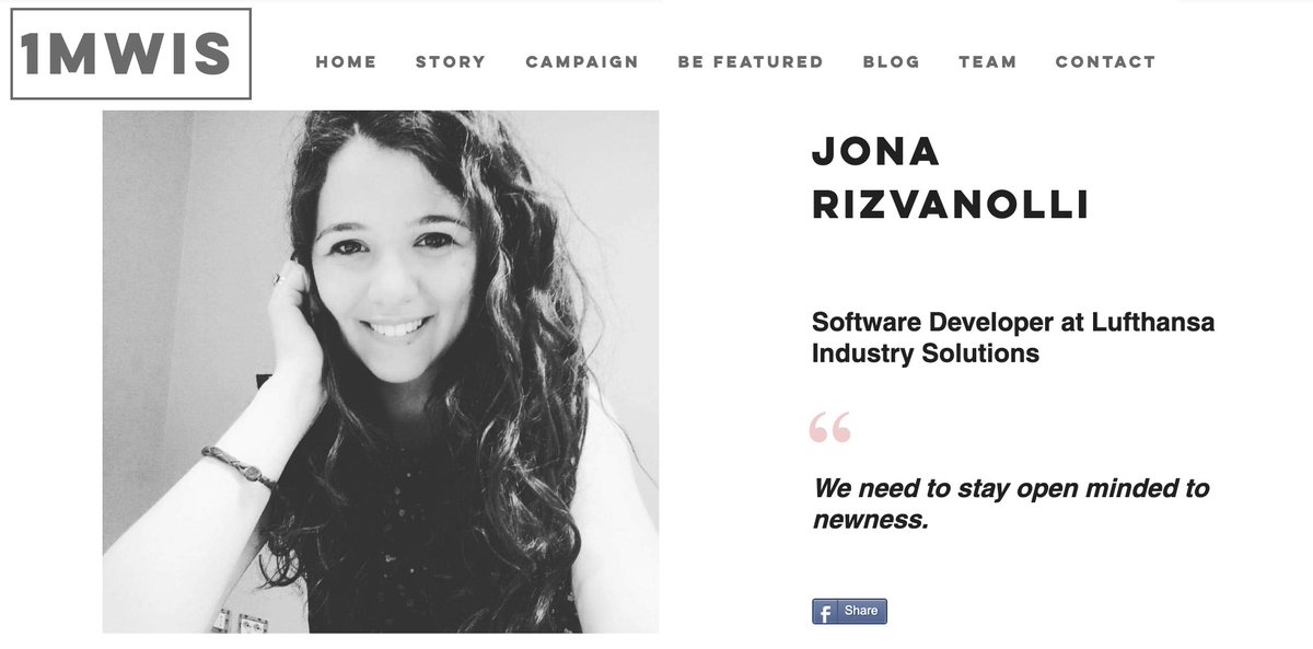 Hey Jona Rizvanolli! She is a Software Developer, part of the Robotic Process Automation team. She co-mentors Technovation Challenge, aiming to teach girls how to build mobile apps. Wow, what a role model!
