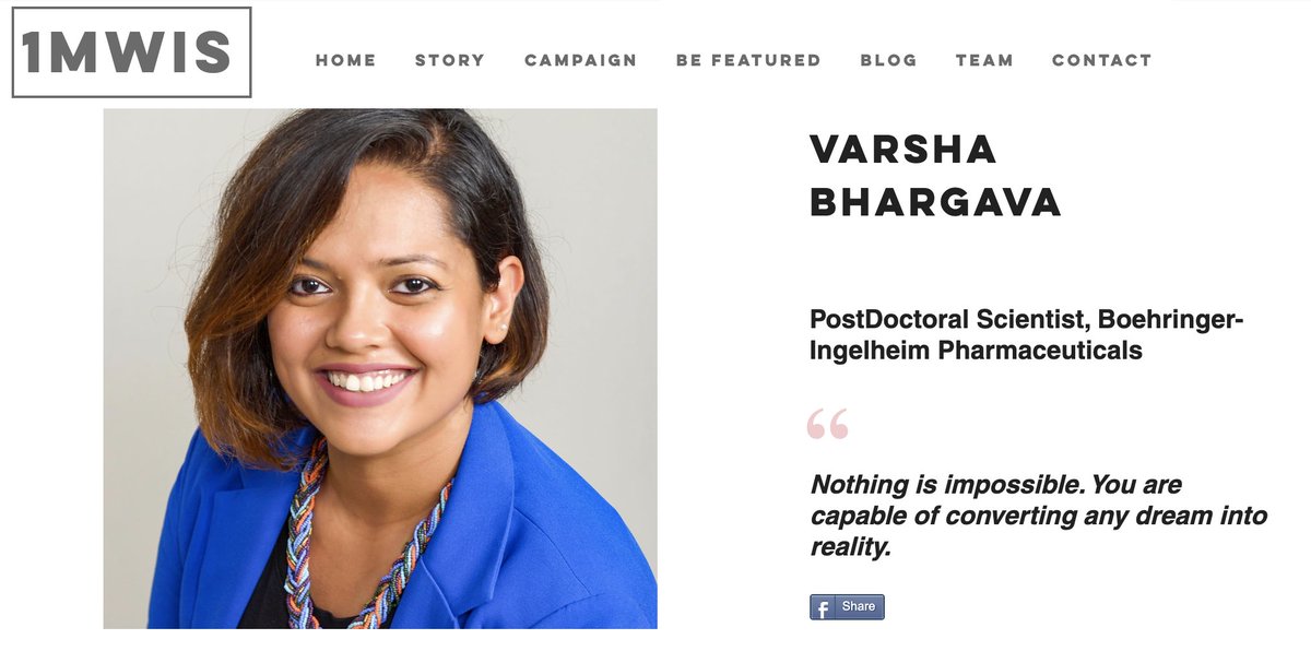 Meet Varsha Bhargava! She is a Postdoctoral Scientist. She is researching and building new-age, futuristic regenerative therapies for Diabetes. Wow, what a role model!
