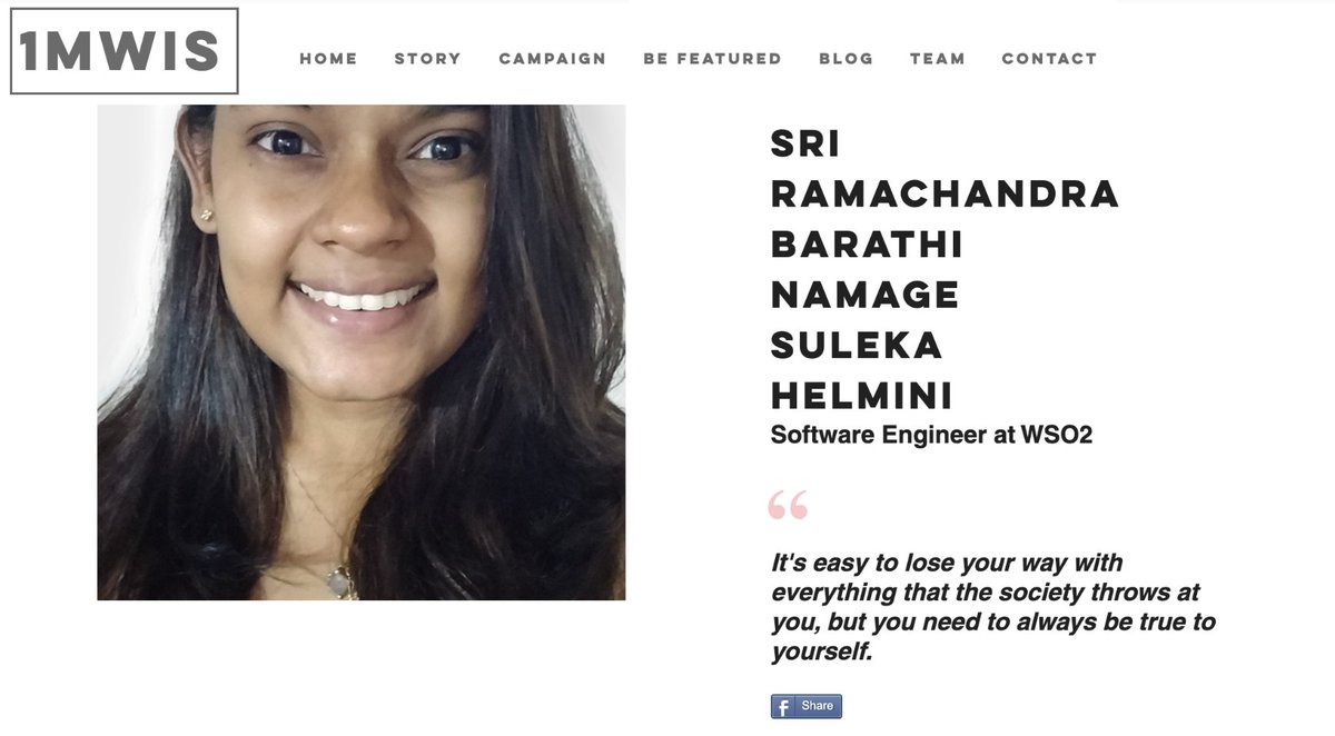Welcome Sri Ramachandra Barathi Namage Suleka Helmini! She is a Software Engineer. She works as a software engineer for one of the leading open-source technology providers in the middleware market. Wow, what a role model!