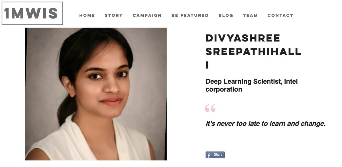 Meet Divyashree Sreepathihalli! She is a Deep Learning Scientist. She develops artificial intelligence algorithms for smart and secure inference on the edge. She has worked extensively on anonymized machine vision. Wow, what a role model!