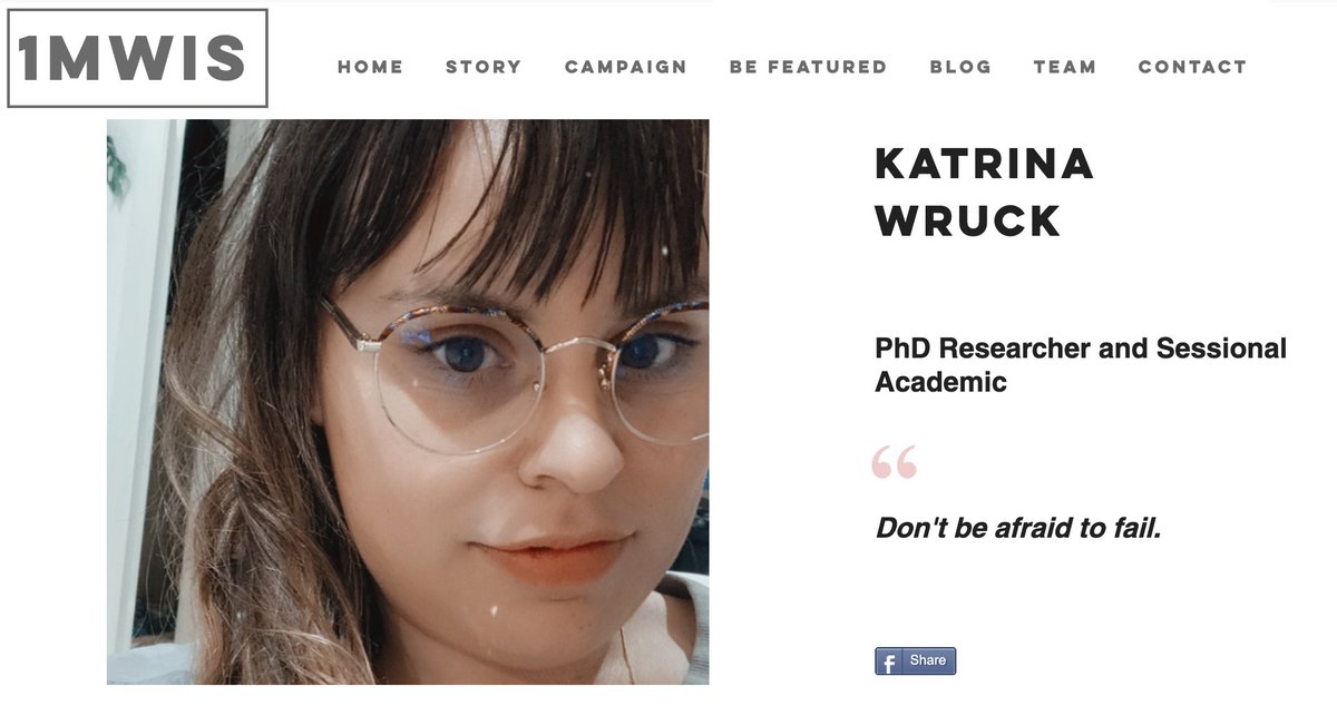 Hey Katrina Wruck! She is a PhD Researcher and Sessional Academic. She is researching innovative advances in water treatment using natural zeolite and composite materials based on biopolymers. Wow, what a role model!