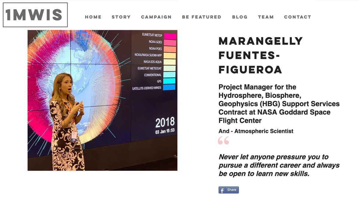 Welcome Marangelly Fuentes-Figueroa! She is a Project Manager for the Hydrosphere, Biosphere, Geophysics (HBG) Support Services Contract. Wow!