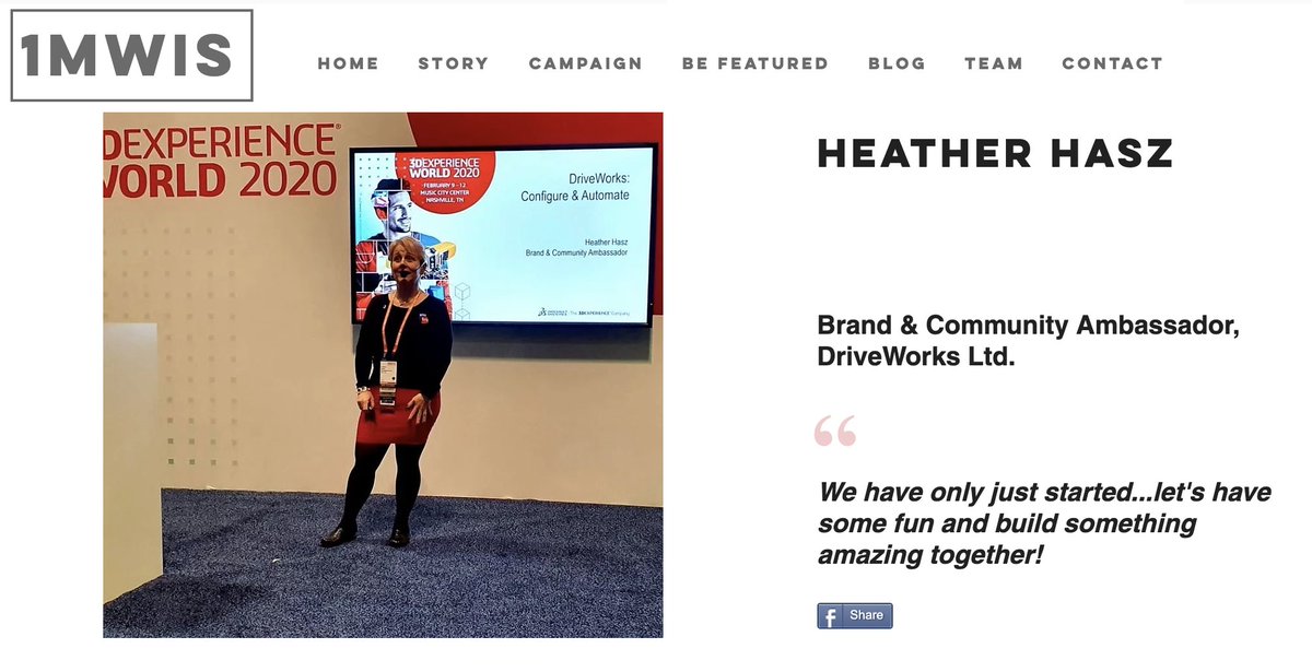 Welcome Heather Hasz! She is a Brand & Community Ambassador. She helps build & support the DriveWorks community in North America & offers professionals the chance to gain additional skills in engineering globally. Wow!